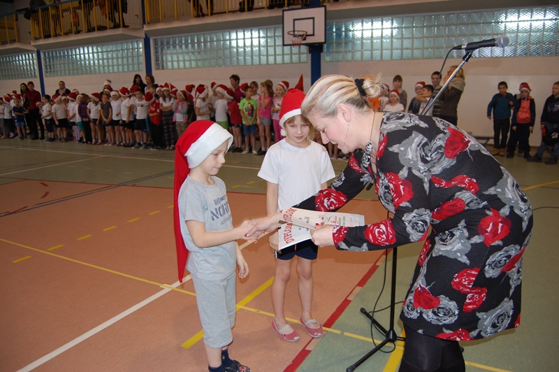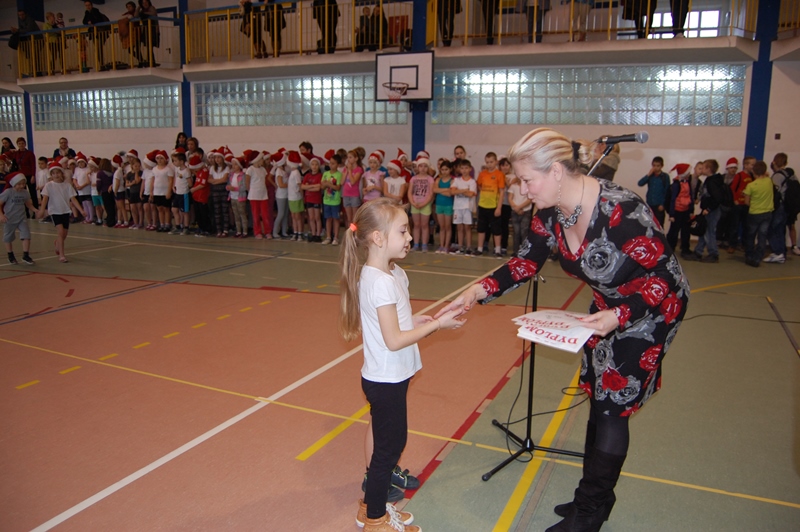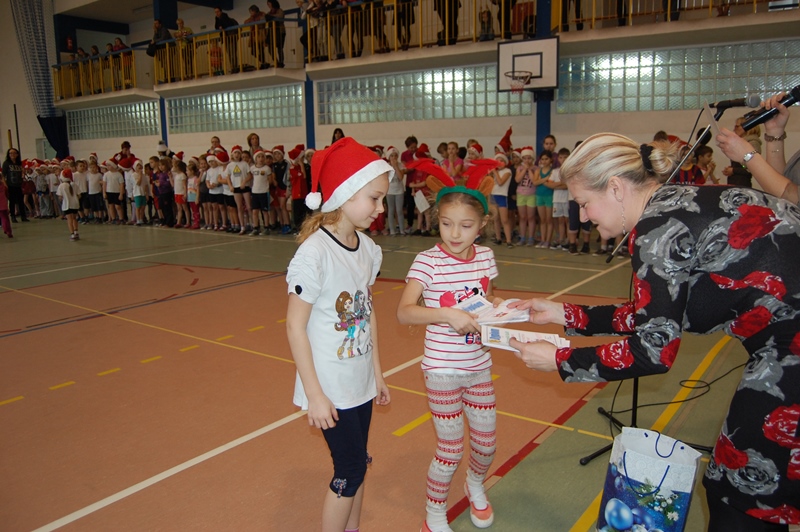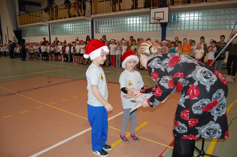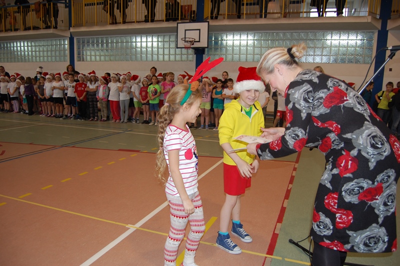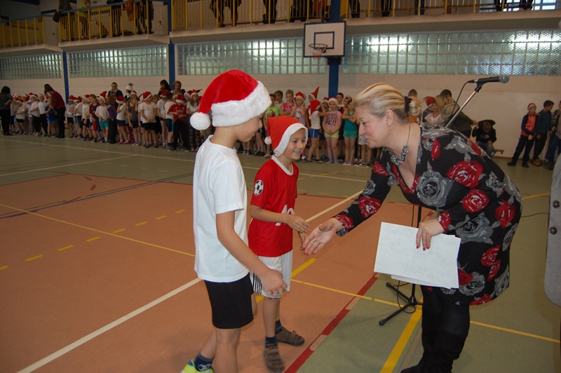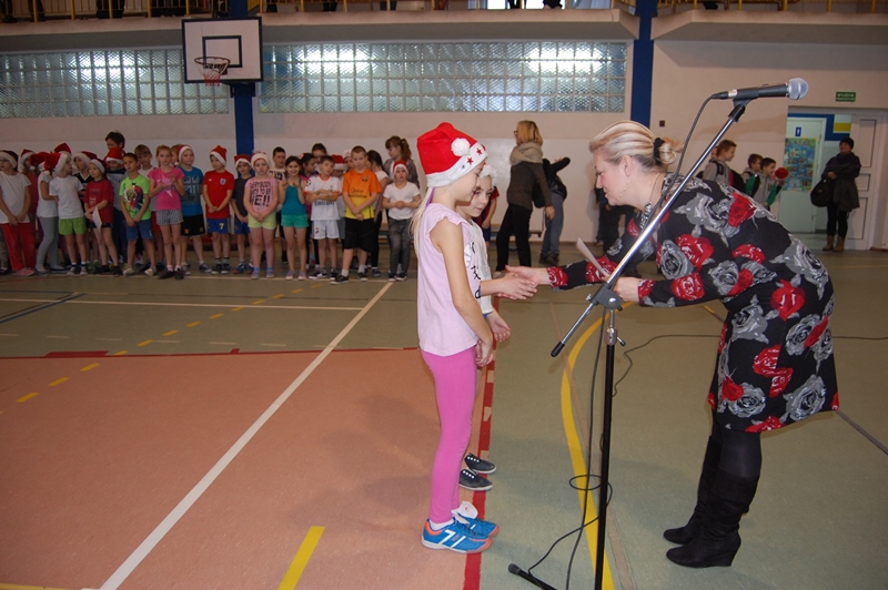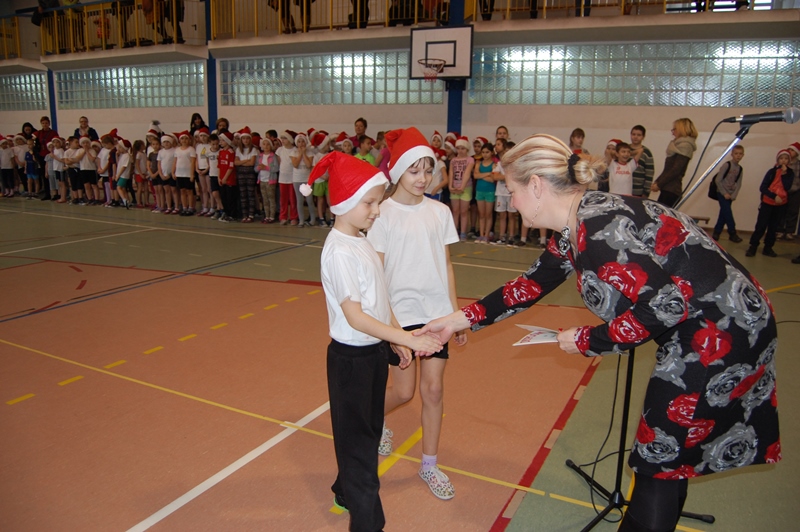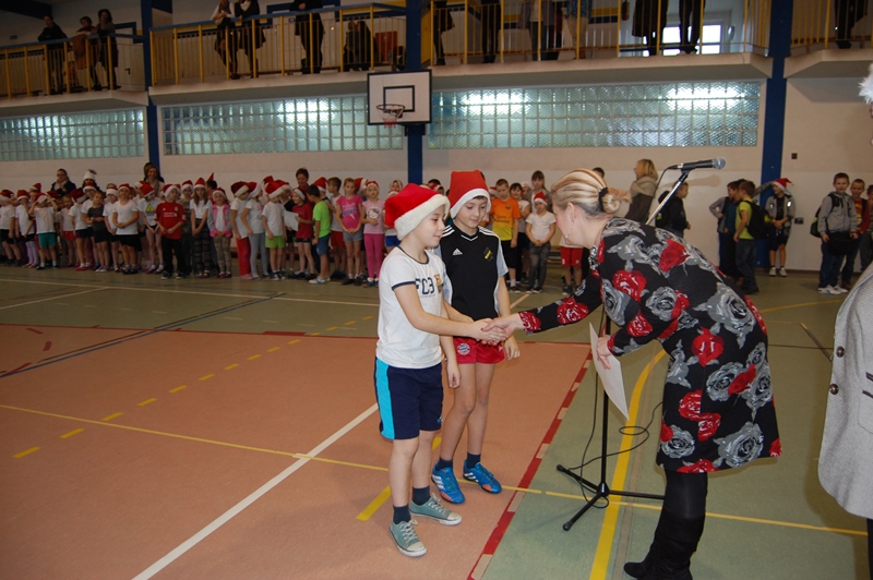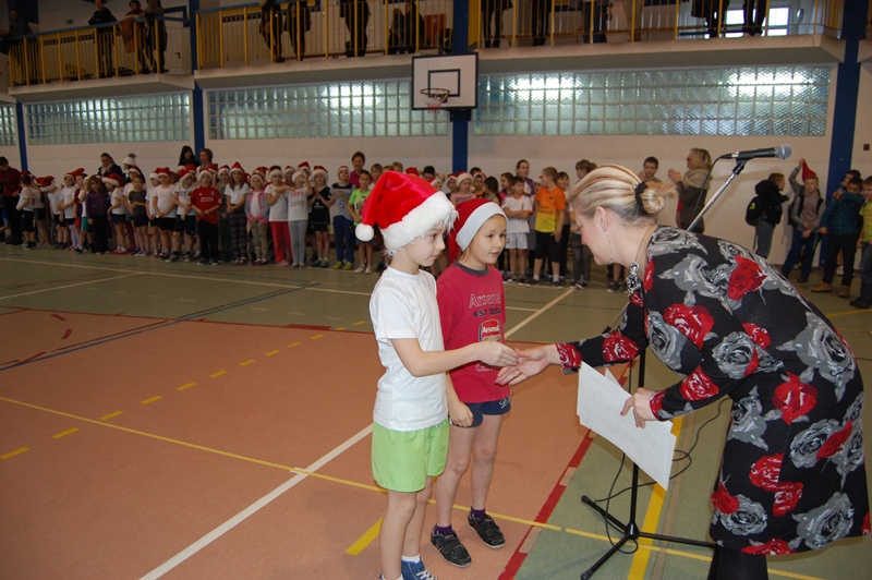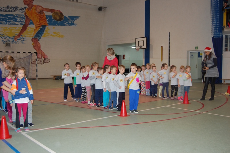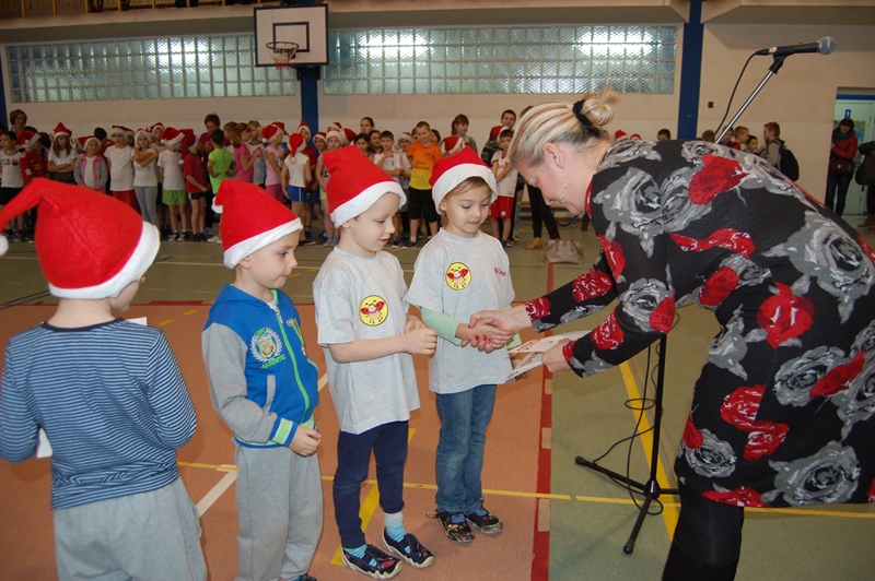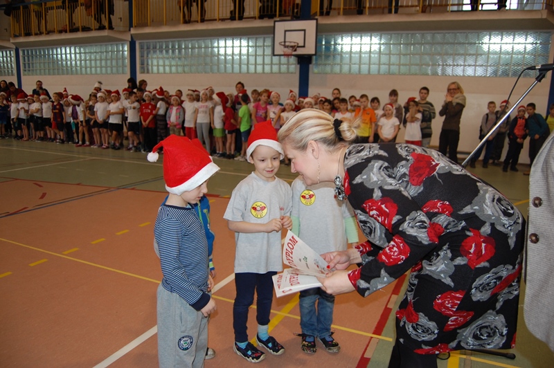Wszystkie klasy zostały uhonorowane dyplomami. Jednak to nie koniec atrakcji. Małych sportowców odwiedził ŚWIĘTY MIKOŁAJ, który przybył z workiem pełnym prezentów i obiecał, że wróci do nas już za rok.