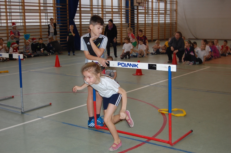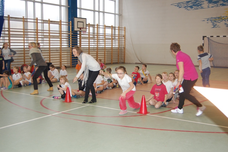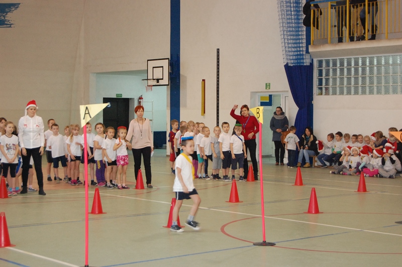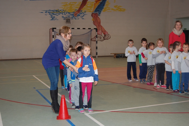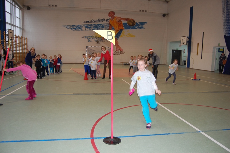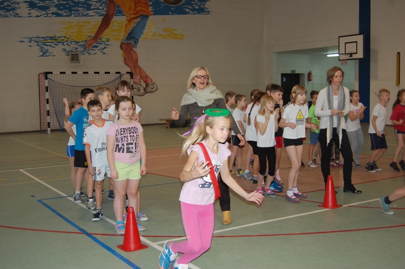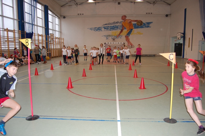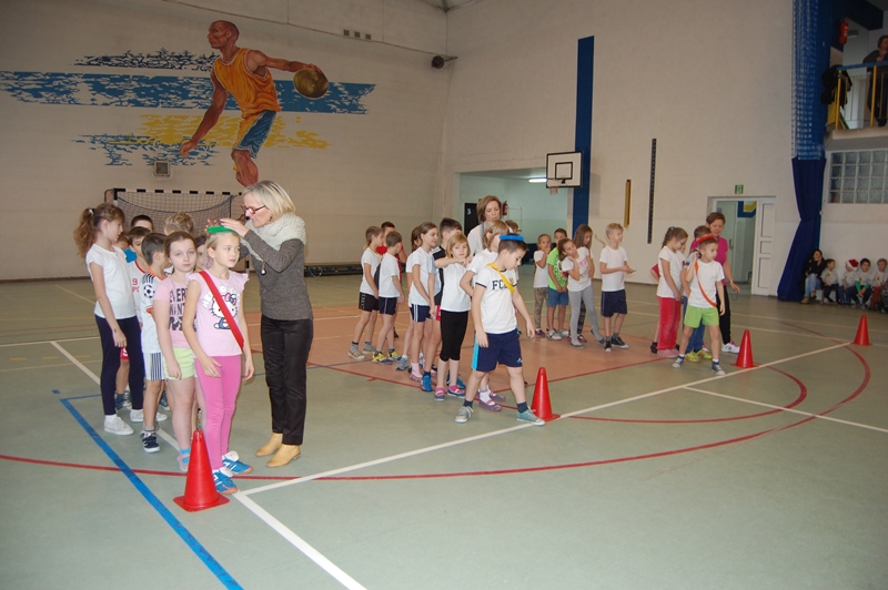 Rywalizacja odbyła się w następujących konkurencjach sportowych: bieg z maskotką, przechodzenie przez szarfę, pod płotkiem, kozłowanie piłki – slalom, pokonywanie trasy na piłce „kangurce” itp. Zawodom towarzyszyły ogromne emocje, wszyscy uczestnicy starali się wygrać a wychowawcy klas i rodzice dzielnie im kibicowali.
