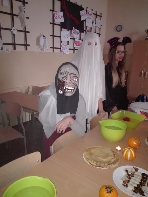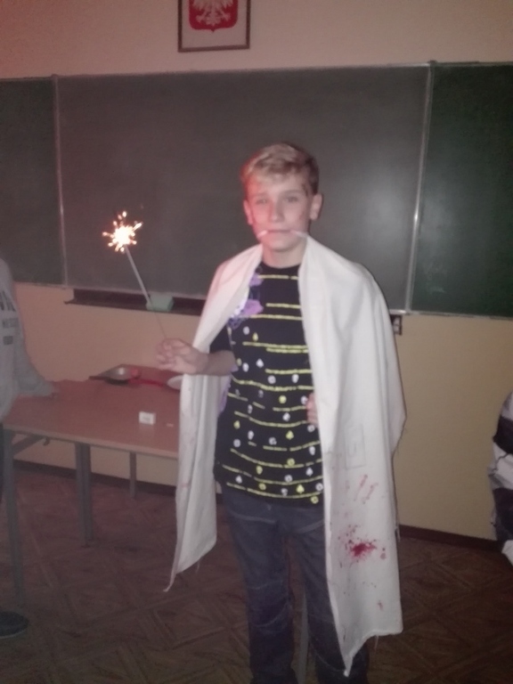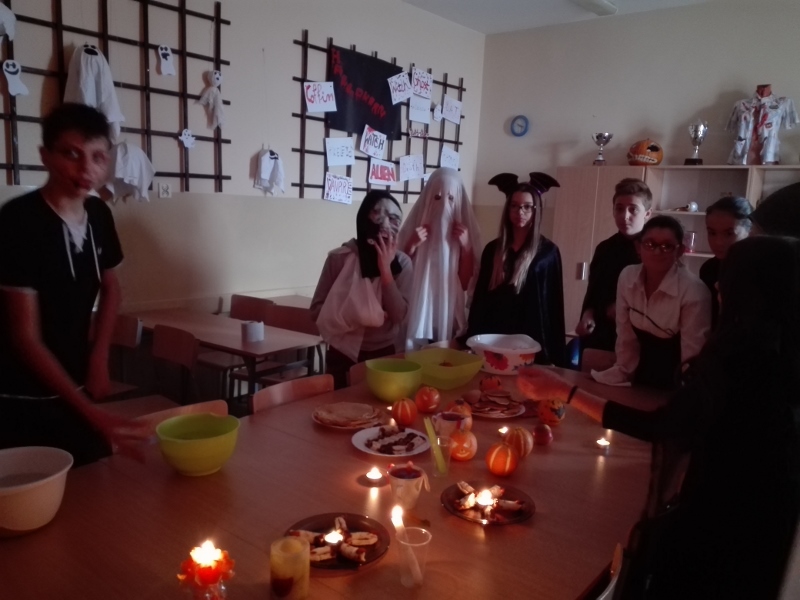 Zamiast tradycyjnego referatu na temat hucznie obchodzonych świąt w Wielkiej Brytanii, klasa językowa w Gimnazjum w Debrznie postanowiła przygotować projekt polegający na inscenizacji trzech popularnych brytyjskich uroczystości, mało lub w ogóle nie znanych w Polsce. Część klasy przebrała się za „stwory z piekła rodem” i przygotowała poczęstunek oraz zabawy, w które na przysłowiowym „zachodzie” bawią się dzieciaki z okazji Halloween. Druga grupa przygotowała kukłę Guy’a Fawkes’a, postaci historycznej, która co roku jest palona na stosie z okazji nieudanej próby obalenia króla dnia 5 listopada 1605r. Tego dnia Brytyjczycy organizują pochód, palą sztuczne ognie, jedzą hot dogi, a na koniec oglądają pokaz fajerwerków. Polskie listopadowe powietrze okazało się wprawdzie niezbyt sprzyjające dla zimnych ogni, których nie udało się nam zapalić, ale pochód boiskiem szkoły z pieczołowicie wykonanym Guy’em i z tradycyjnym wierszem „Remember, remember…” na ustach wypadł widowiskowo. Po unicestwieniu kukły w beczce (stosu nawet nie próbowaliśmy zapalić…) uczniowie wzięli udział w „wyścigu naleśników”. To lutowe święto przypomina nasz „tłusty czwartek”. Brytyjczycy tego dnia jedzą duże ilości naleśników, a w wielu miastach odbywa się tradycyjny wyścig z naleśnikami na patelni. Śmiechu było mnóstwo, gdyż niesforne placki trzymać się patelni za nic nie chciały, a każdy marzył o pierwszym miejscu i rychłej konsumpcji…