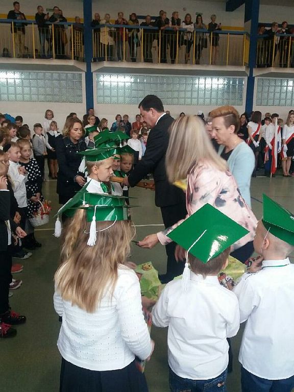 Ślubowanie to jedno z najważniejszych wydarzeń w życiu każdego ucznia, dlatego uroczystość miała bardzo podniosły charakter. Na Ślubowanie przybyli: dyrektor p. Jarosław Samborski, wicedyrektor p. Anna Szczerbiak, nauczyciele, rodzice uczniów, grupy przedszkolne, a także koledzy i koleżanki z klas starszych. Pierwszoklasiści ubrani w stroje galowe niecierpliwie oczekiwali na najważniejszy moment uroczystości – pasowanie na ucznia. Najpierw jednak musieli zaprezentować program artystyczny. Rodzice dumni ze swoich pociech nagradzali dzieci gromkimi brawami.