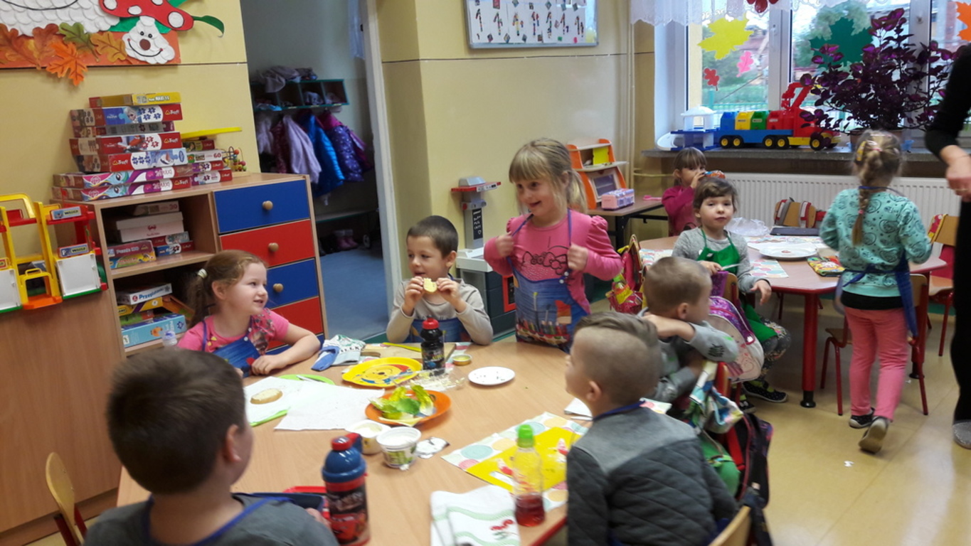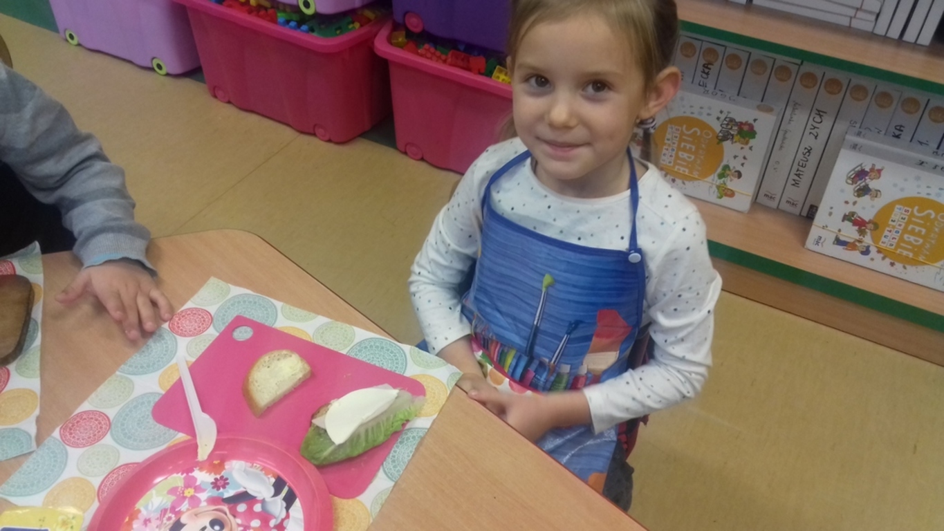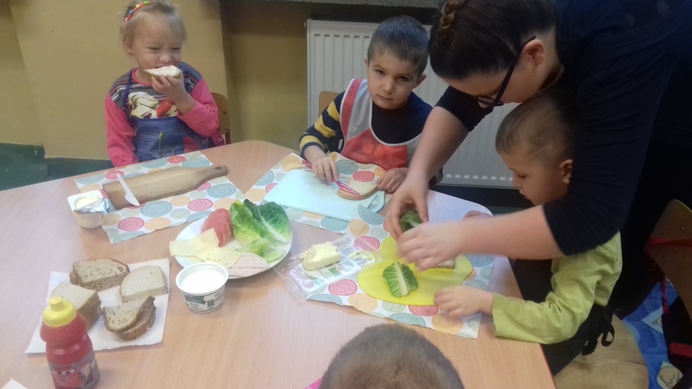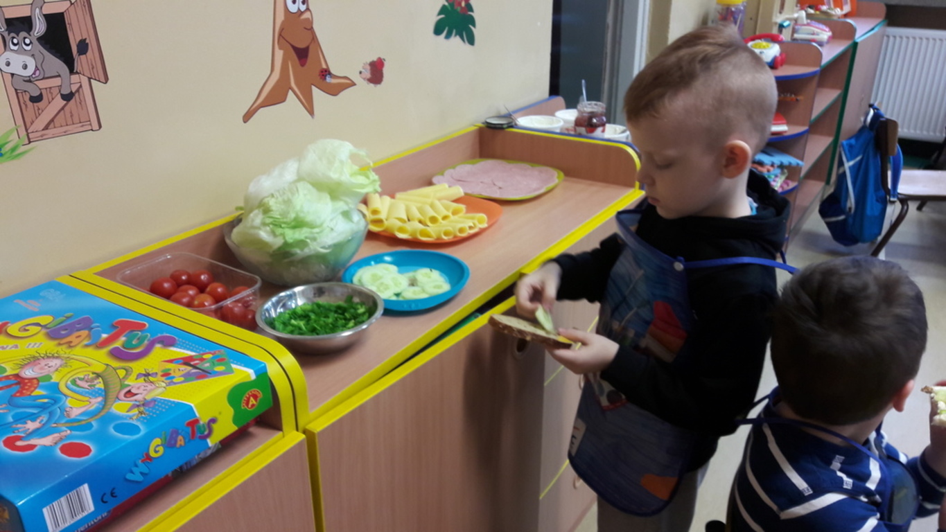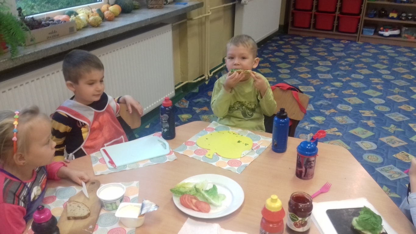 Śniadanie jak wszyscy wiemy to najwazniejszy posiłek dnia. Dzięki niemu dzieci, młodzież i dorośli mają energię do zabawy, nauki i pracy. Po śniadaniu jest lepsza koncentracja oraz siła. To najlepszy start w nowy dzień. 8 LISTOPADA obchodzony jest EUROPEJSKI DZIEŃ ZDROWEGO JEDZENIA I GOTOWANIA. W wielu przedszkolach i szkołach odbywa sie w tym dniu akcja pod haslem "ŚNIADANIE DAJE MOC ". Również w naszej szkole taka akcja odbyła się w dwóch oddziałach przedszkolnych. W tym dniu dzieci samodzielnie przygotowały ?śniadanie. Dzieci robiły kanapki z produktów, które wspólnie przygotowały z opiekunami. Na stolikach nie zabrakło pieczywa pełnoziarnistego, serów, twarożków oraz warzyw. Dzieci najbardziej uradowane były faktem, że same mogły robić kanapki .Było smacznie, zdrowo i kolorowo.