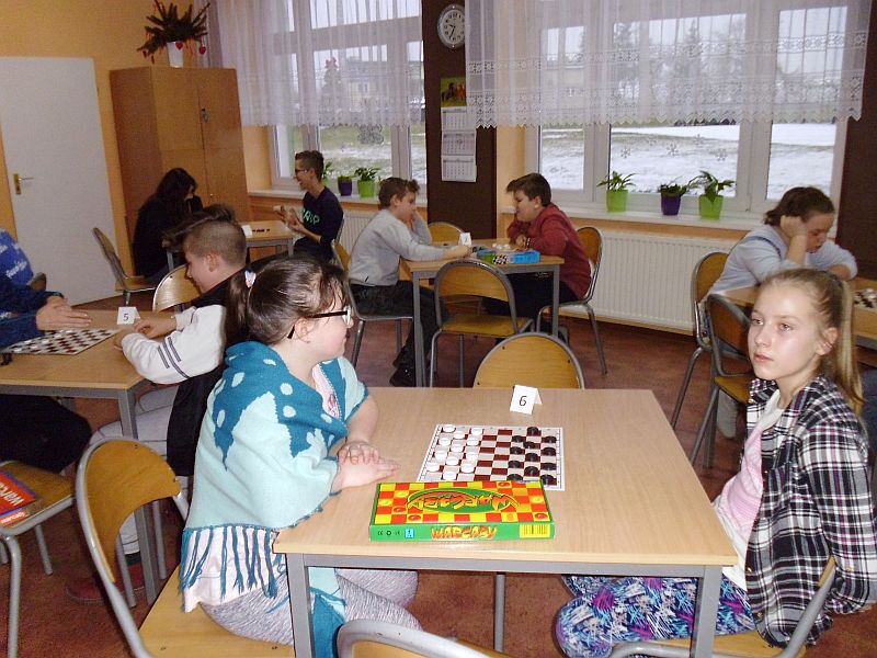 12 stycznia do rozgrywek warcabowych przystąpili uczniowie z klas 4-7.