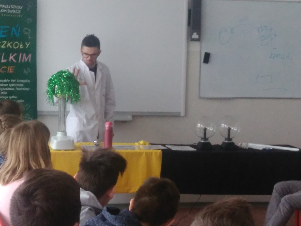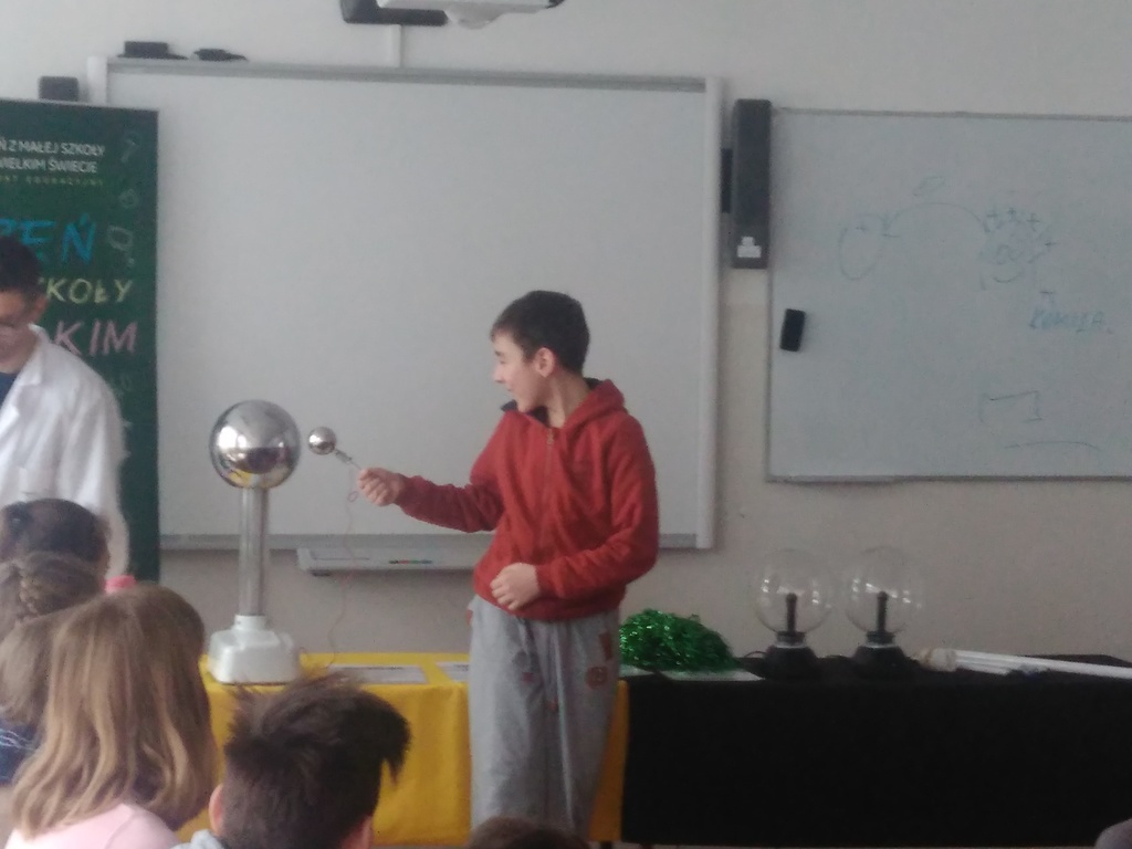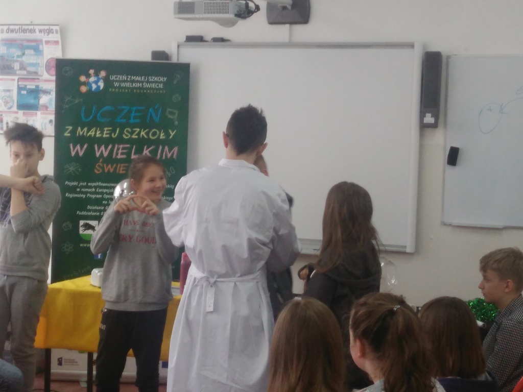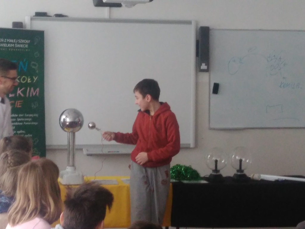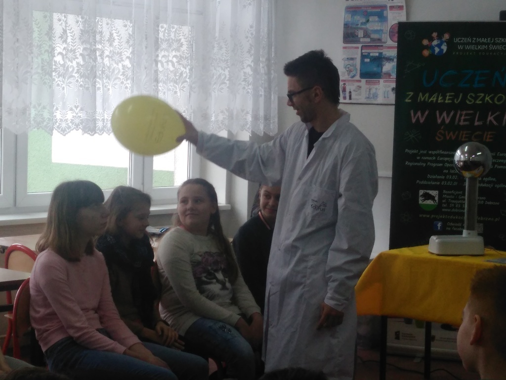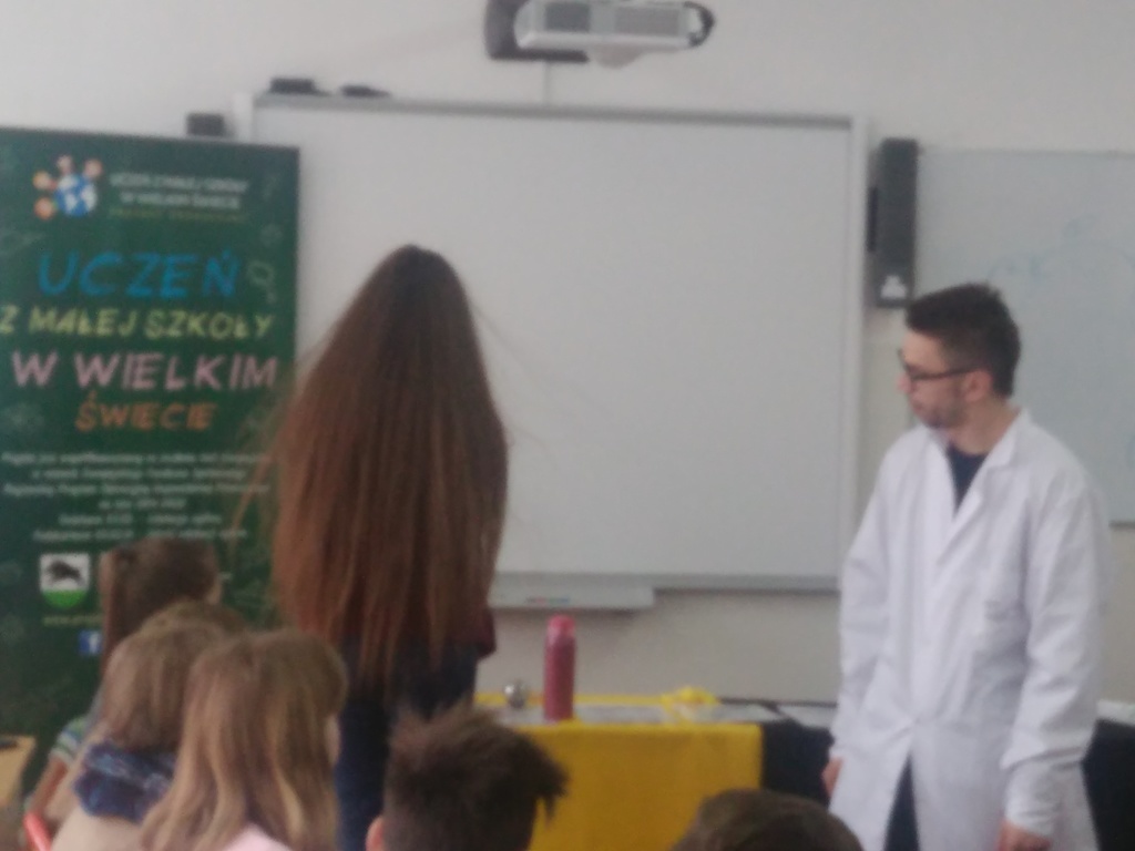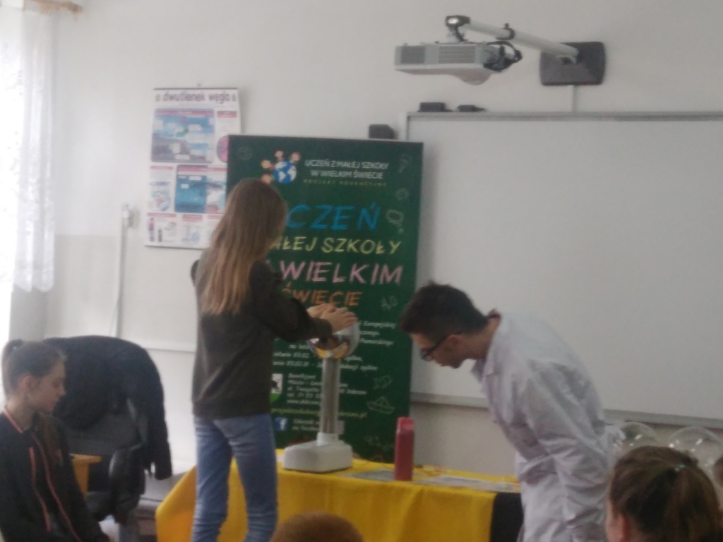 W ramach projektu "Uczeń z małej szkoły w wielkim świecie" w naszej szkole odbywają się zajęcia interaktywne. Uczniowie szkoły podstawowej uczestniczyli w zajęciach "Potęga elektryczności", a młodzież gimnazjum odkrywała tajemnice kryminologii badając swoje odciski palców i dna oraz pozyskując sztuczną krew. Zajęcia prowadzili edukatorzy z Centrum Interaktywnej Edukacji i Zabawy EduFan z Gdańska. Zapraszamy na kolejne zajęcia.