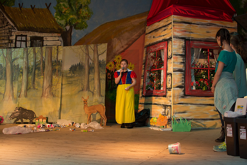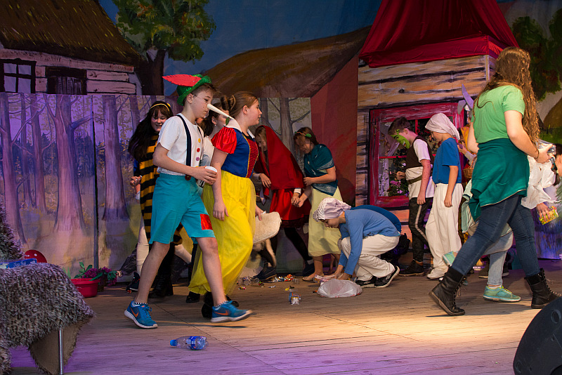 Uczniowie szkół podstawowych z naszej gminy, przedszkolaki oraz wychowankowie MOW zaprezentowali przedstawienia i odegrali etiudy o tematyce ekologicznej. Była więc Królewna Śmieszka, która nie myła owoców, przez co prawie zginęłaby śmiercią tragiczną. Zaprezentowała się też zła macocha, która nie dbała o czystość w swoim państwie i w końcu bohaterowie znanych bajek, którzy mieli za zadanie posprzątać las.