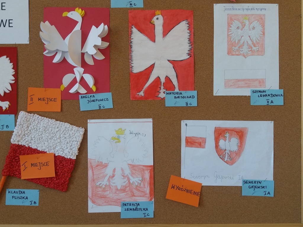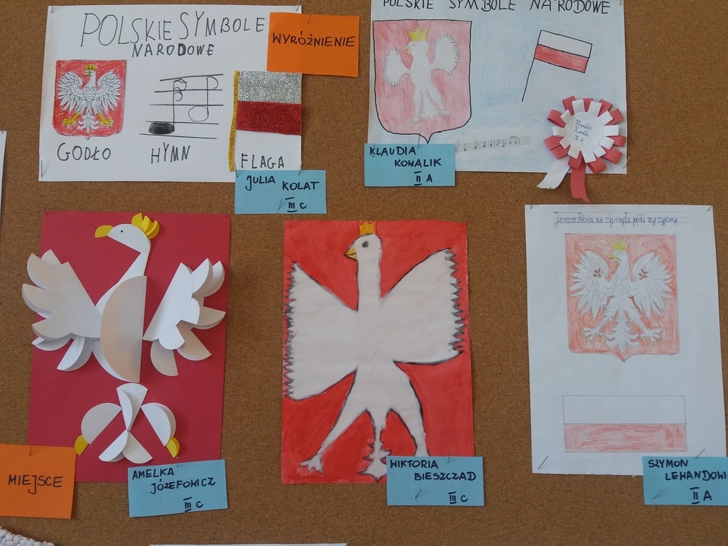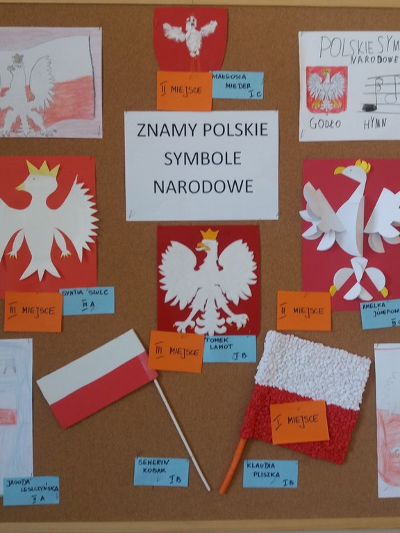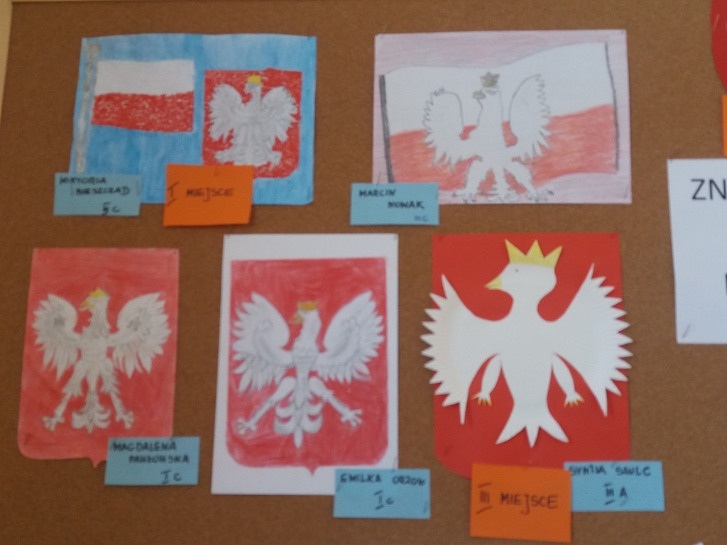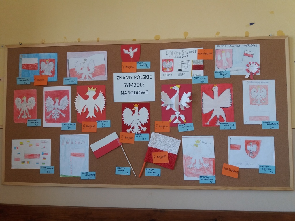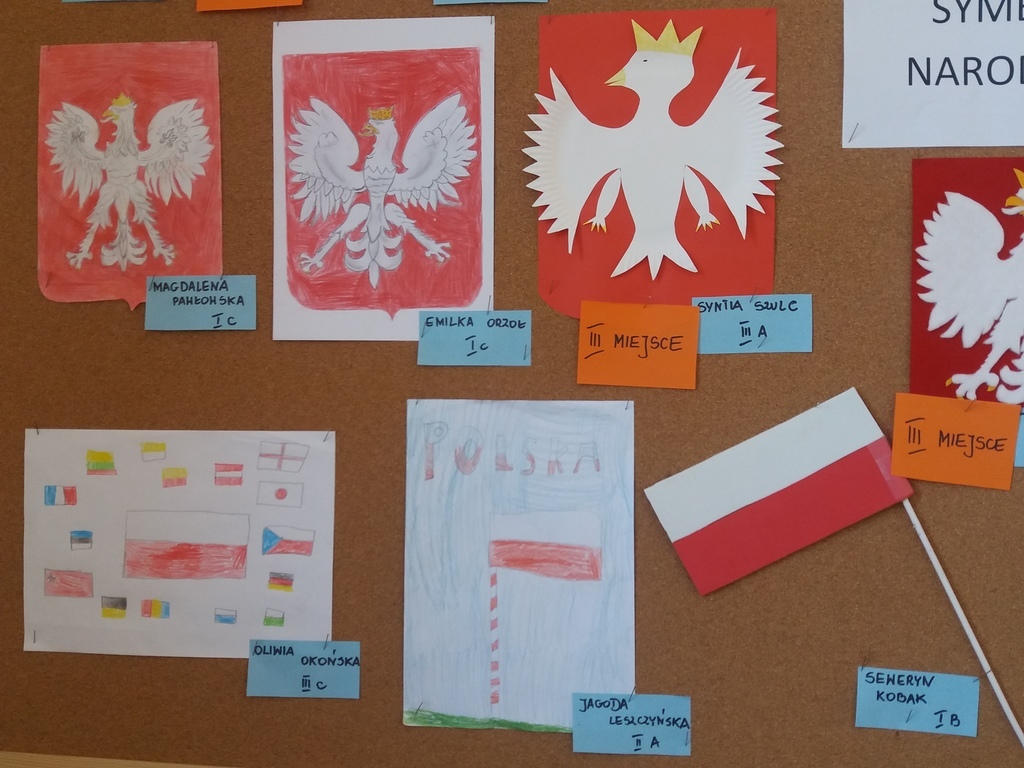 Na przełomie kwietnia i maja 2018r. odbył się SZKOLNY KONKURS PLASTYCZNY „ZNAMY POLSKIE SYMBOLE NARODOWE”. Konkurs przeznaczony był dla uczniów klas I – III Szkoły Podstawowej. Celem konkursu było: