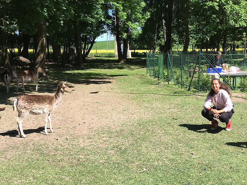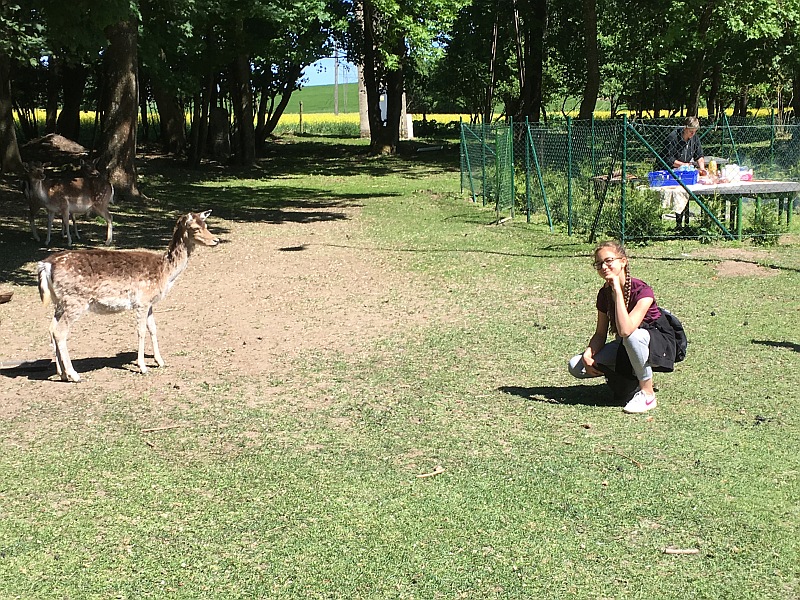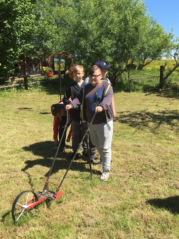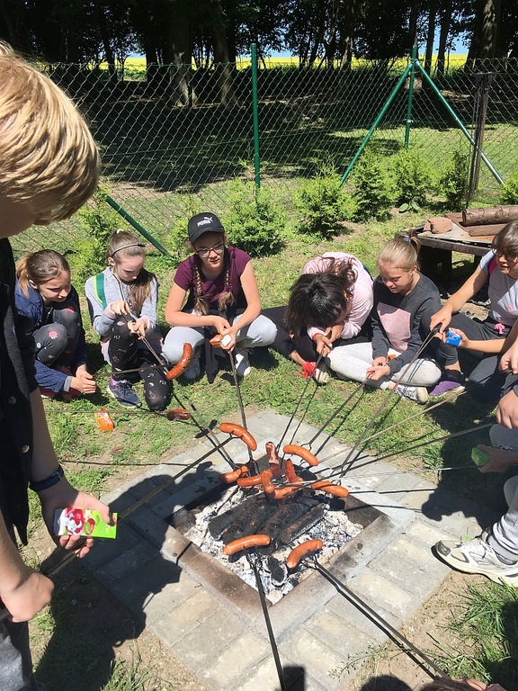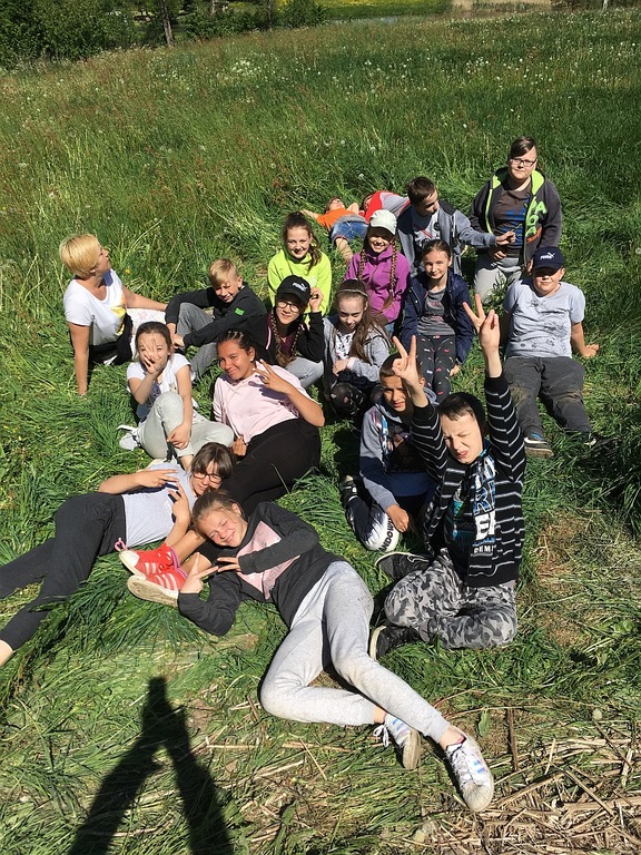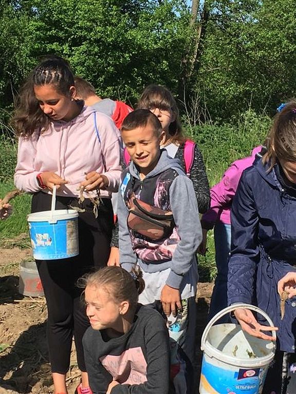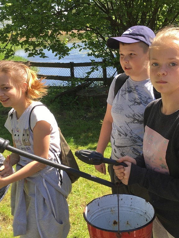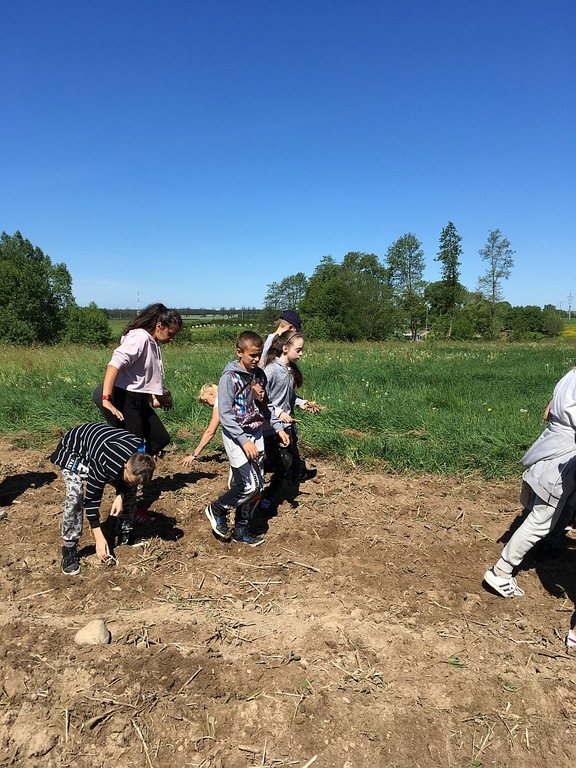 Takie właśnie bulwy zbierali uczniowie klasy V c wraz z wychowawczynią panią Jolantą Matysik. W ramach współpracy z Kołem Łowieckim Orzeł, 19 maja 2018 roku pomagali myśliwym w zbieraniu tej rośliny. Koło od lat uprawia topinambur na paszę dla zwierząt w postaci zielonej, jak również bulw, którymi chętnie żywią się dziki. Uczniowie w pełni byli zaangażowani w pracę na polu. Następnie już po raz kolejny mieli okazję odwiedzić siedzibę koła, a tam czekało na nich ognisko, słodycze, napoje i skromne upominki. Niewątpliwą atrakcją okazały się daniele, które swobodnie poruszały się po terenie przyległy do Bażantarni. Dzieci mogły obserwować te zwierzęta z bardzo bliskiej odległości, a nawet nakarmić je. Pełni nowych wrażeń uczniowie klasy V c wrócili do domów.