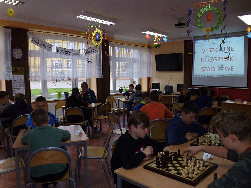 W VI Szkolnych Rozgrywkach Szachowych wzięło udział 40 uczniów. Celem rozgrywek jest pogłębianie umiejętności szachowych, ćwiczenie logicznego myślenia i zachęcenie uczniów do pożytecznego wykorzystywania czasu wolnego. W rozgrywkach uczniowie zagrali w trzech kategoriach wiekowych, klasy 1-3, 4-7 szkoły podstawowej oraz klasy 2-3 gimnazjum. Rozgrywki wyłoniły zwycięzców: