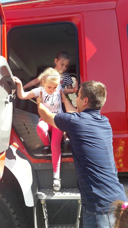 Dzień Strażaka tradycyjnie obchodzony jest 4 maja. Oddziały przedszkolne 0a i 0b wybrały się z wizytą do OSP troszkę później - 23 maja. Zapoznano dzieci ze sprzętem strażackim i pracą strażaka. Zwiedziliśmy remizę, jednak największą atrakcją było dla wszystkich polewanie wody z węża strażackiego. W podziękowaniu za miłe przyjęcie wręczylismy strażakom bukiety kwiatów.