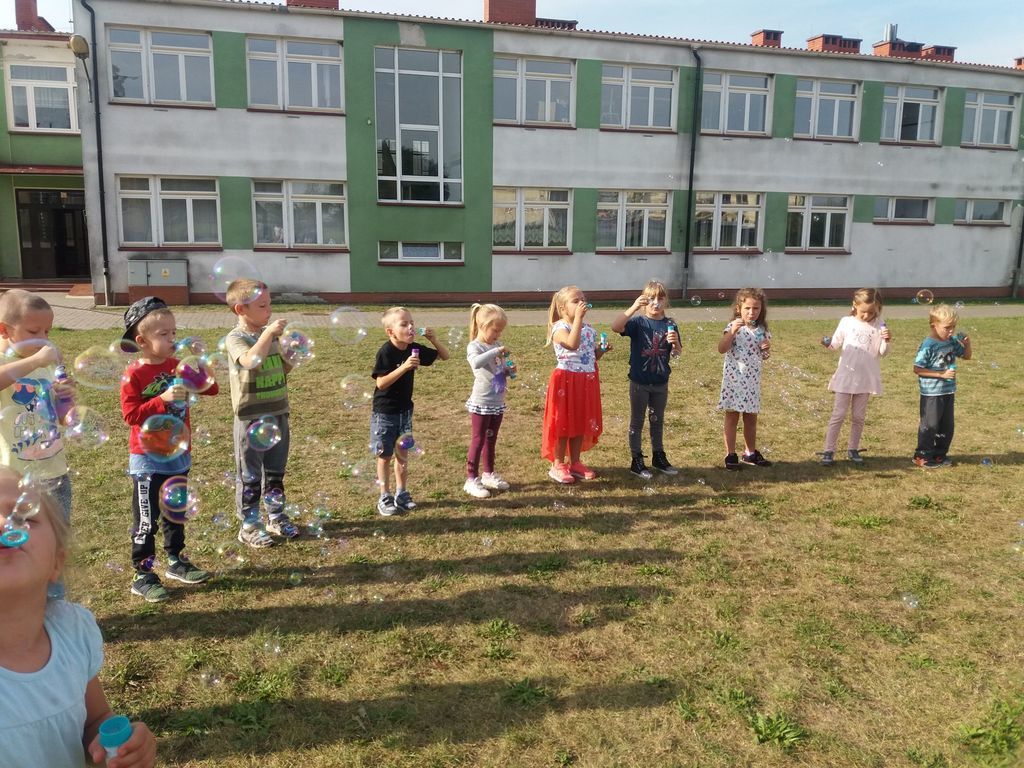20 września obchodzony jest Dzień Przedszkolaka. W naszej szkole w oddziałach przedszkolnych 0a i 0b również ten dzień był wyjątkowy. Sale przedszkolne udekorowane były balonami, a dzieci aktywnie spędziły ten dzień. Na boisku szkolnym odbyły się zabawy ruchowe i gry zręcznościowe. Dzieci rysowały kredą, puszczały bańki mydlane, bawiły się chustą animacyjną. Pogoda nam dopisała i dzieci miło spędziły cały dzień.