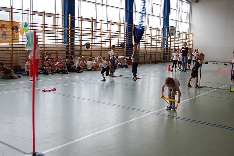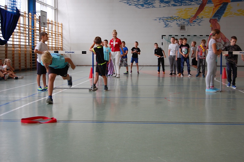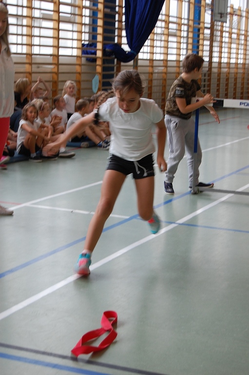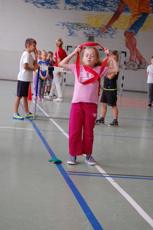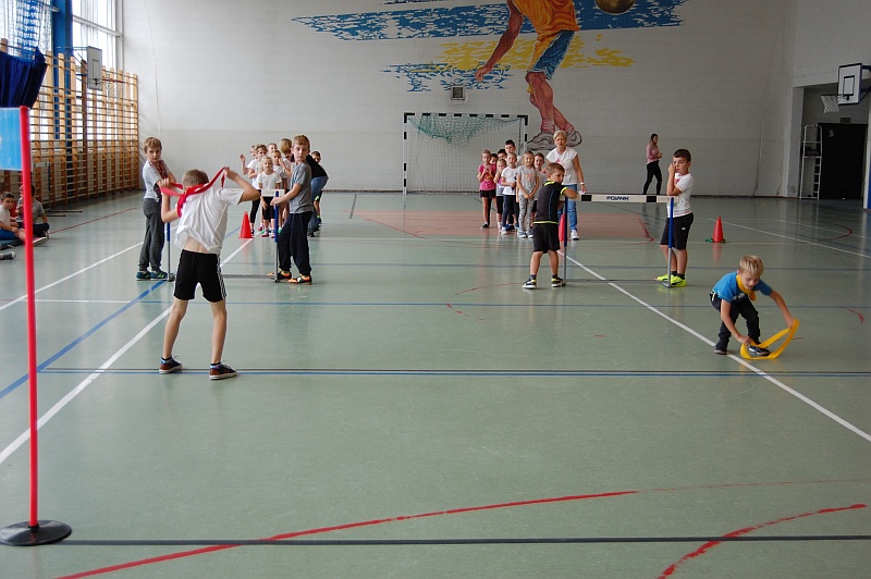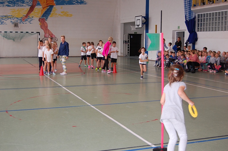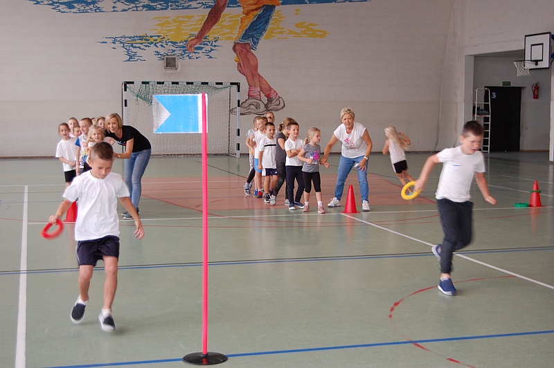 29. września odbył się turniej gier i zabaw, który zainaugurował szkolny rok sportowy. Wzięli w nim udział uczniowie kl. I-III szkoły podstawowej. Celem była popularyzacja sportu wśród dzieci oraz uświadomienie uczniom, że aktywny tryb życia jest drogą do osiągania życiowych sukcesów. Zawody miały charakter wyścigu 10 osobowych drużyn z wykorzystaniem różnych przyrządów sportowych. Nad prawidłowym przebiegiem sportowych zmagań czuwała komisja w składzie: wicedyrektor Anna Szczerbiak i pani Ewa Deręgowska.