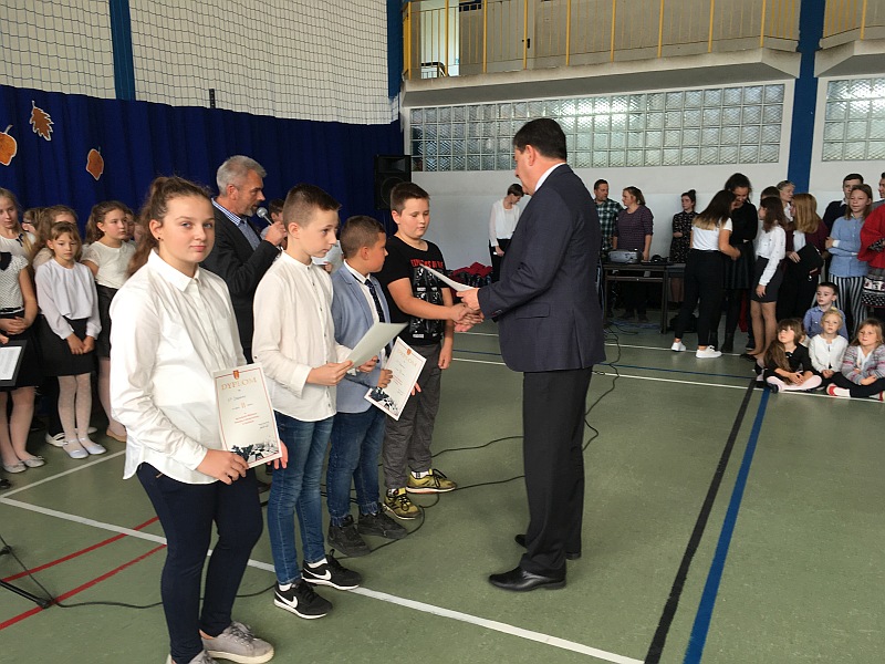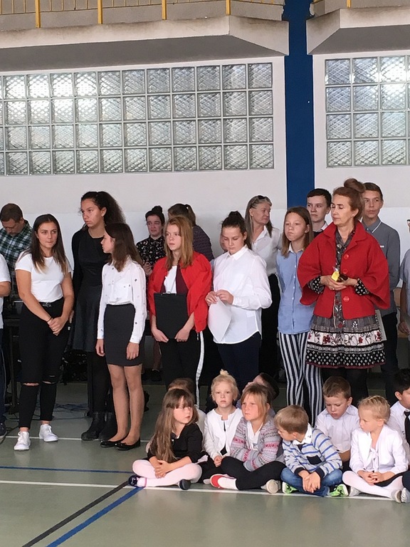 12 października odbył się w naszej szkole apel z okazji Dnia Edukacji Narodowej. Przygotowały go klasy IV b i IV c. Na apel składały się wiersze i piosenki poświęcone trudnej pracy nauczycieli. Uczniowie przedstawili wszystko pięknie i żywiołowo, z energią i uśmiechem. Na koniec uczennica klasy VIIIb, Iga Kobryń, zagrała na skrzypcach utwór "Sto lat". Apel zakończyły życzenia z okazji przypadającego święta.