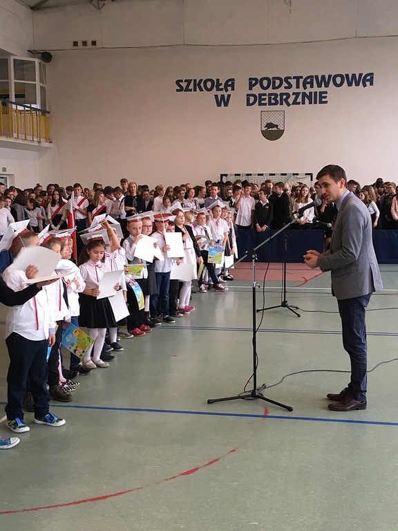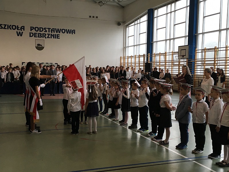 19 października 49 pierwszoklasistów stało się oficjalnie uczniami Szkoły Podstawowej w Debrznie. Odbył się uroczysty apel, podczas którego uczniowie klasy Ia i Ib ślubowali sumiennie się uczyć, szanować nauczycieli, dbać o środowisko. W obecności Burmistrza Miasta i Gminy Debrzno, pana Wojciecha Kallasa zostali pasowani na uczniów przez dyrektora szkoły, pana Jarosława Samborskiego. Na koniec mali bohaterowie dnia otrzymali upominki od rodziców i społeczności szkolnej.