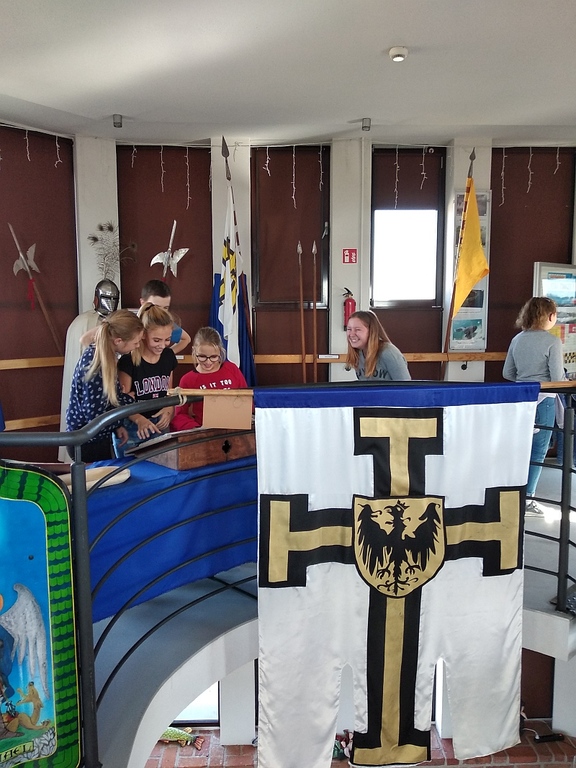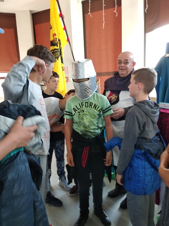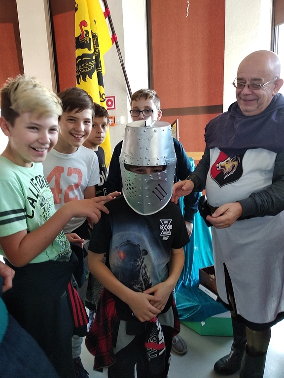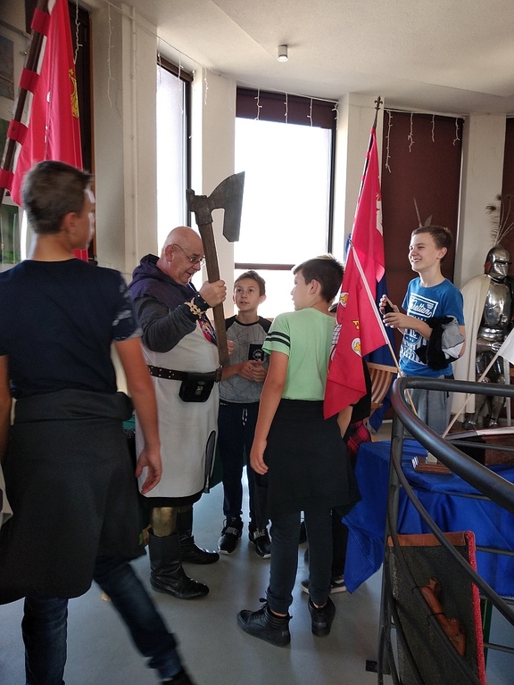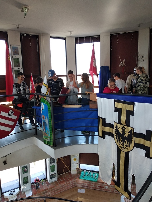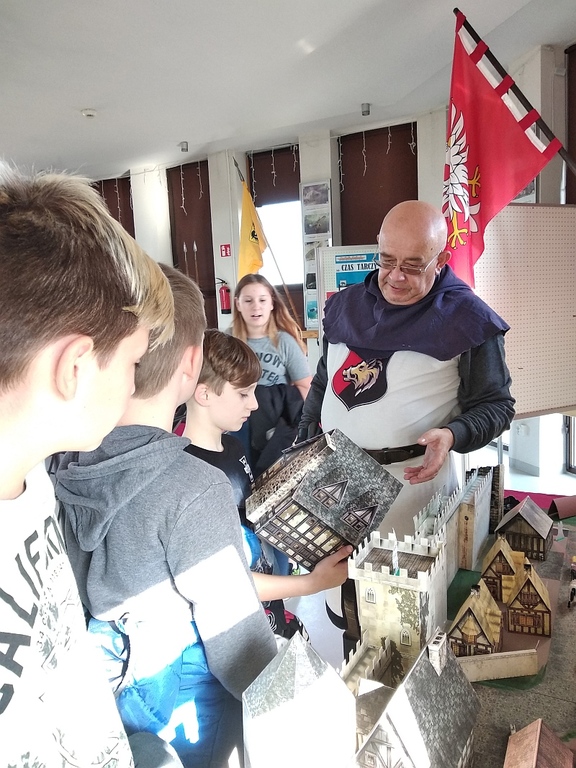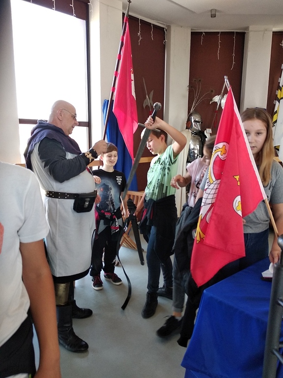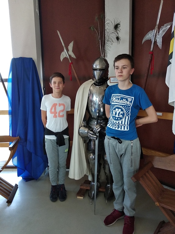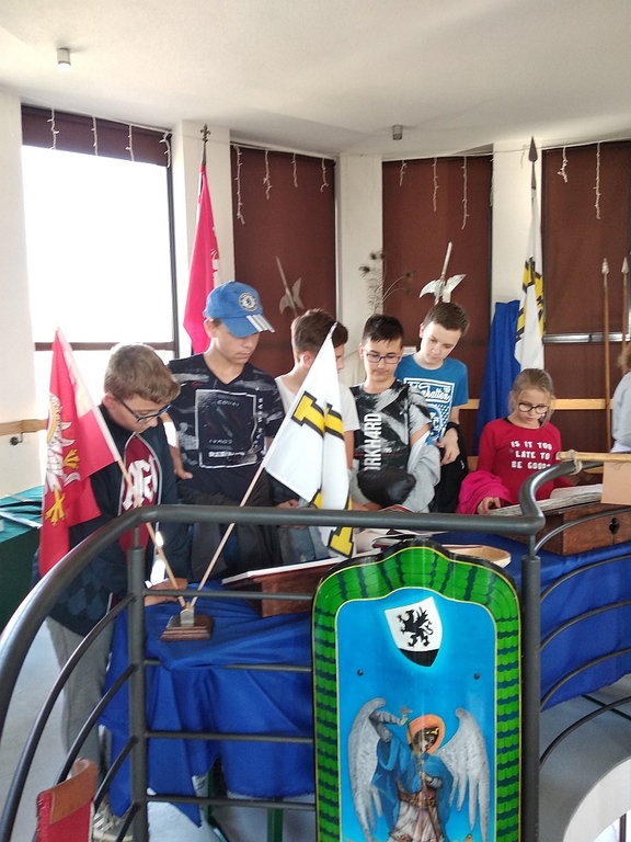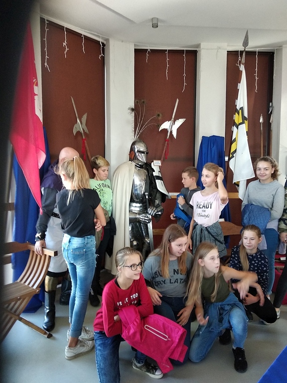 „Czas tarczy i miecza” to tytuł wystawy w Baszcie Młyńskiej w Debrznie, na którą 16 października wybrała się klasa VI B. W przystępny i ciekawy sposób poznaliśmy historię kultury średniowiecznej. Pan Krzysztof Myhal ubrany w strój rycerski zapoznał nas z uzbrojeniem średniowiecznego rycerza i przypomniał kodeks rycerski. Ciekawie opowiadał o zwyczajach i życiu codziennym średniowiecznego społeczeństwa. Wystawa jest bardzo pouczająca, pozwała poszerzyć naszą wiedzę i rozwijać nasze zainteresowania.