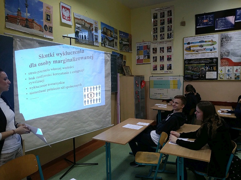 19 listopada, w ramach projektu "Ośrodek Wsparcia Ekonomii Społecznej w Debrznie", uczniowie trzecich klas gimnazjalnych uczestniczyli w warsztatach na temat ekonomii społecznej. Panie: Dominika Wegner i Katarzyna Berezowska z Ośrodka Wsparcia Ekonomii Społecznej w Debrznie przeprowadziły warsztaty na temat: "Od wykluczenia do solidarności, czyli po co nam ekonomia społeczna?"