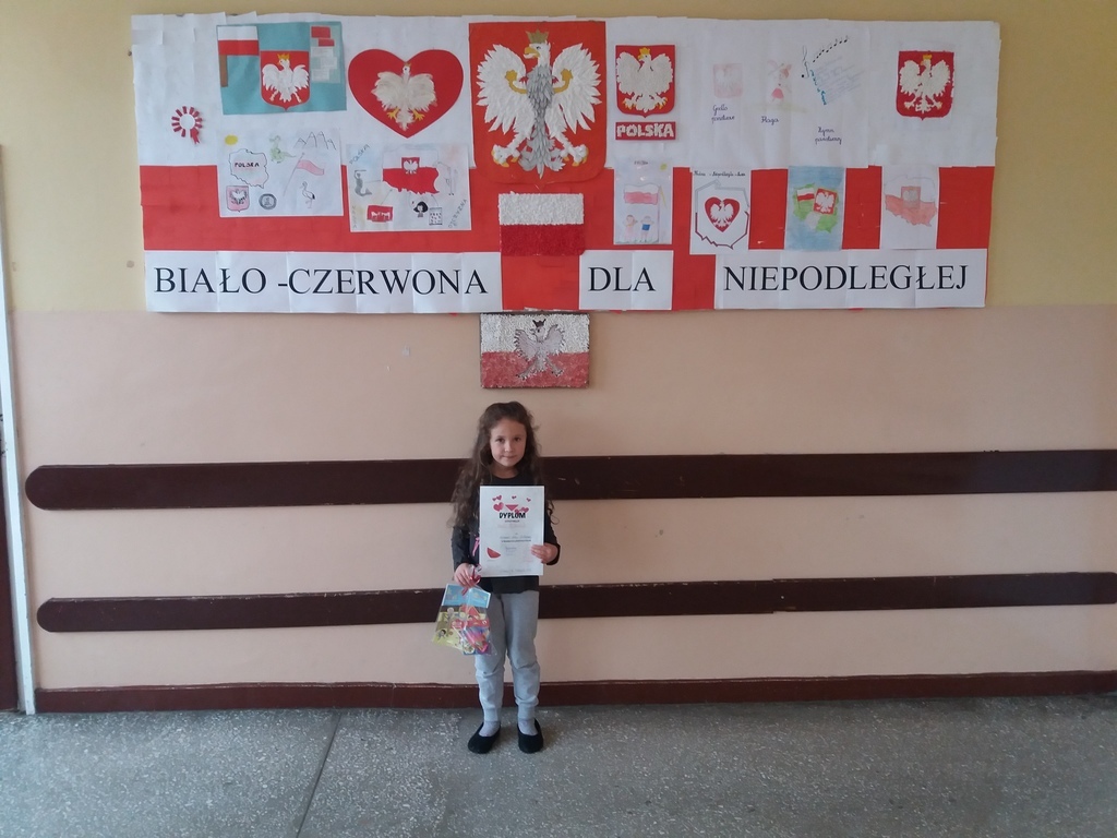 W związku z obchodami 100. Rocznicy Odzyskania Niepodległości przez Polskę odbył się konkurs dla najmłodszych dzieci z oddziałów przedszkolnych. Hasłem przewodnim konkursu było "Przedszkolaki dla Niepodległej -11 listopada". Zadaniem dzieci było wykonanie pracy plastyczno-technicznej o tematyce patriotycznej. Prace konkursowe wykonane były dowolną techniką plastyczną. Dzieci bardzo się postarały i starannie wykonały zadanie. Wszystkie prace zostały nagrodzone dyplomem i nagrodami. Prace zostały wyeksponowane na korytarzu szkolnym.