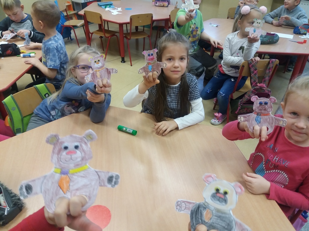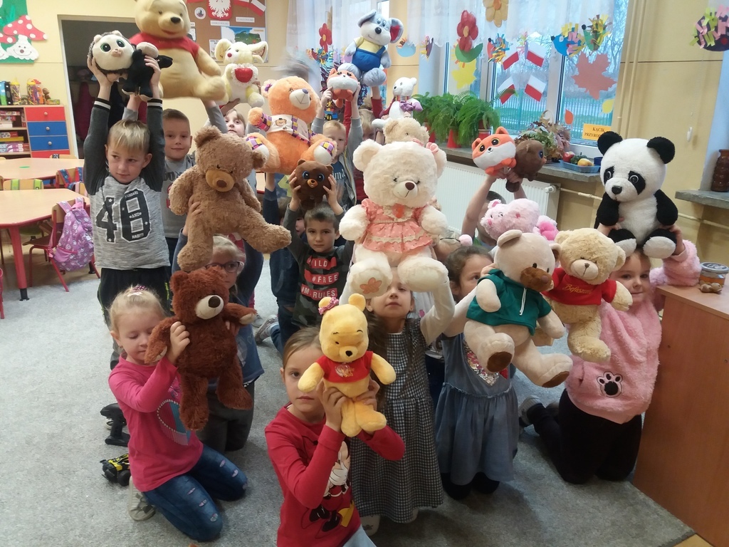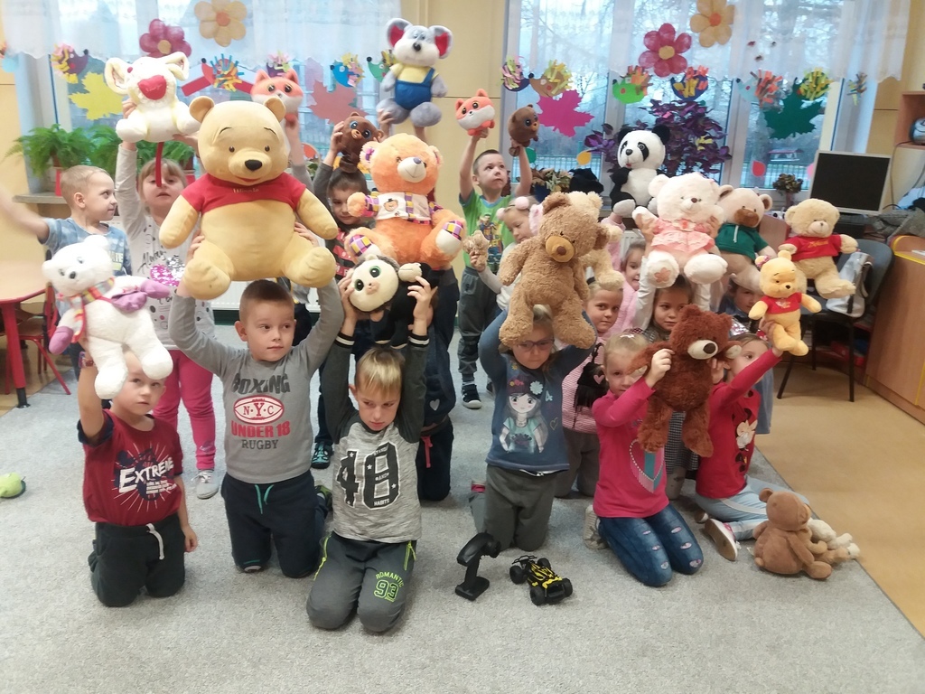 25 listopada jak co roku obchodzony jest Światowy Dzień Pluszowego Misia. W oddziałach przedszkolnych dzieci świętowały już w piątek. Przedszkolaki przyniosły w tym dniu swoje pluszaki i inne ulubione maskotki. Podczas zajęć opowiadały o swoich przytulankach, rysowaly misie i wykonały prace plastyczno-techniczna, pt. "Miś ".
