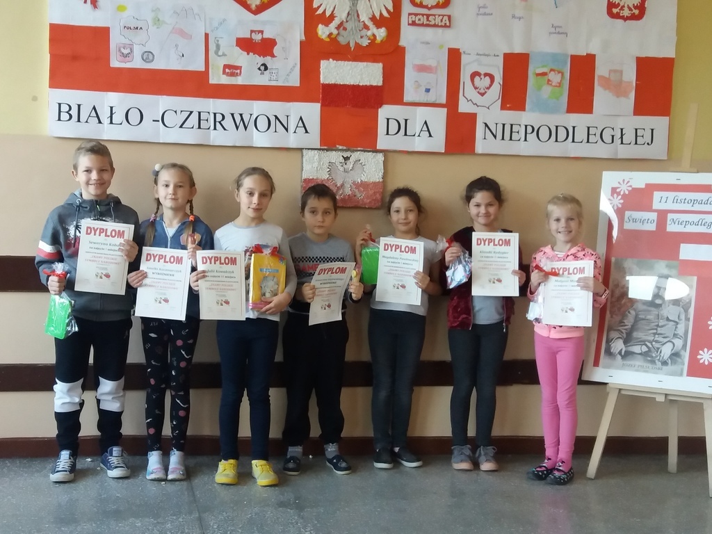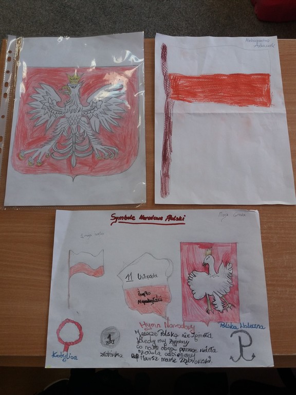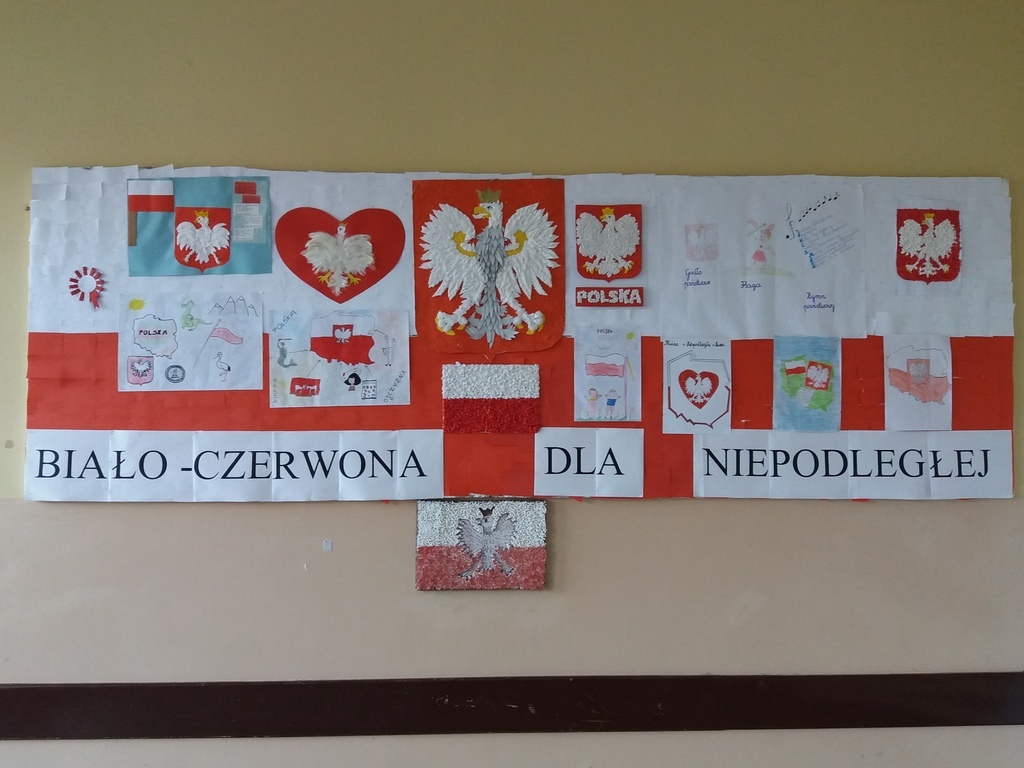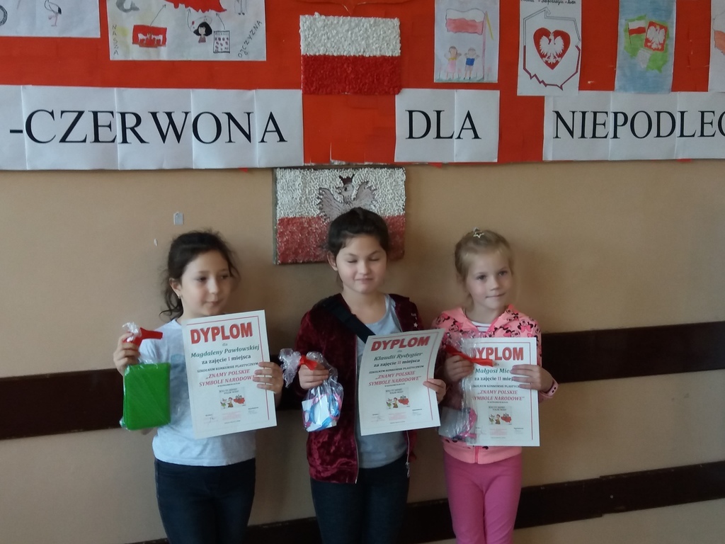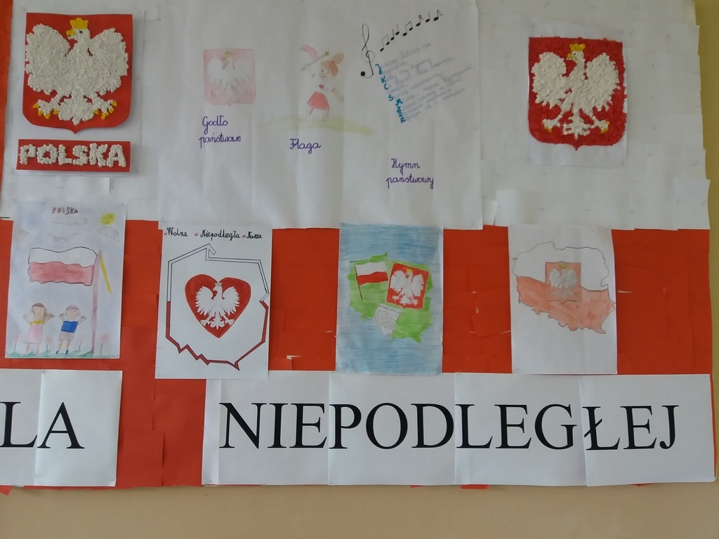 W związku z obchodami 100. Rocznicy Odzyskania Niepodległości przez Polskę odbył się szkolny konkurs plastyczny „ZNAMY POLSKIE SYMBOLE NARODOWE”. Konkurs przeznaczony był dla uczniów klas I – III Szkoły Podstawowej.