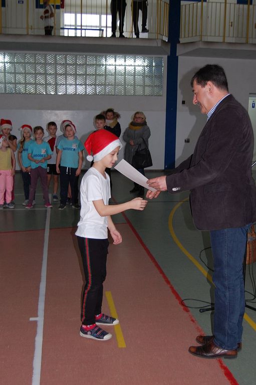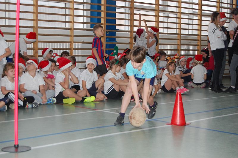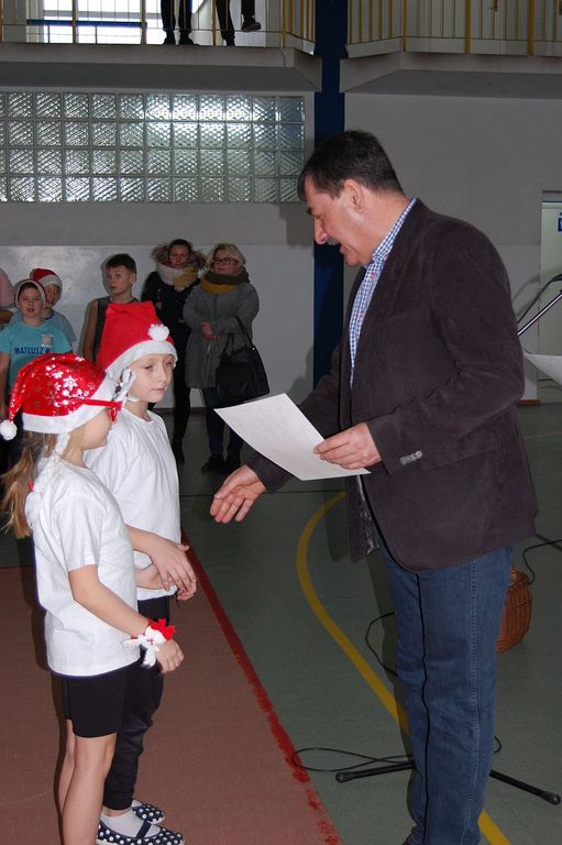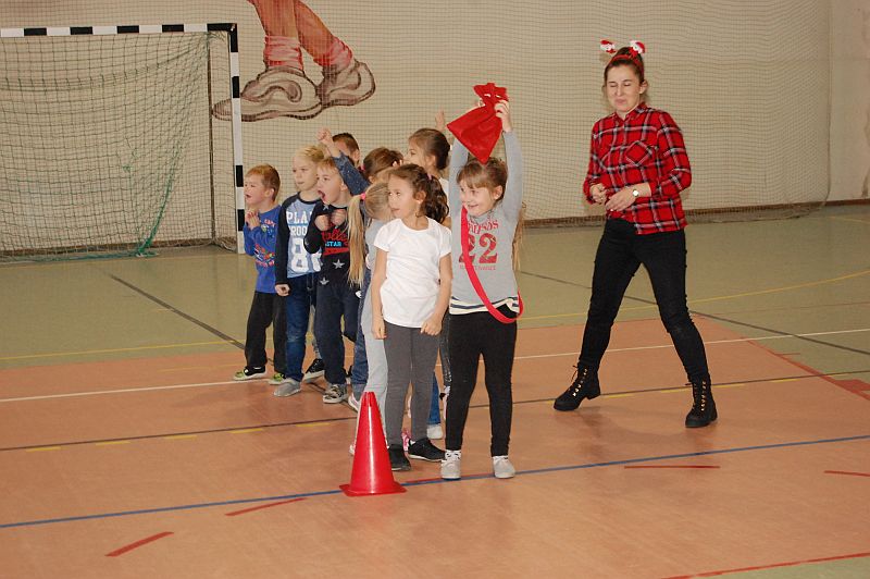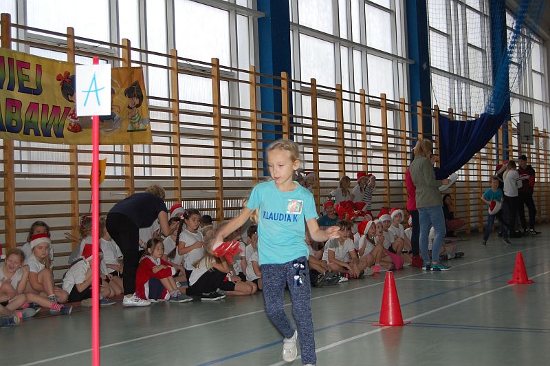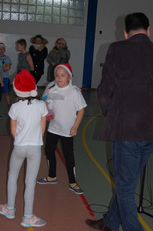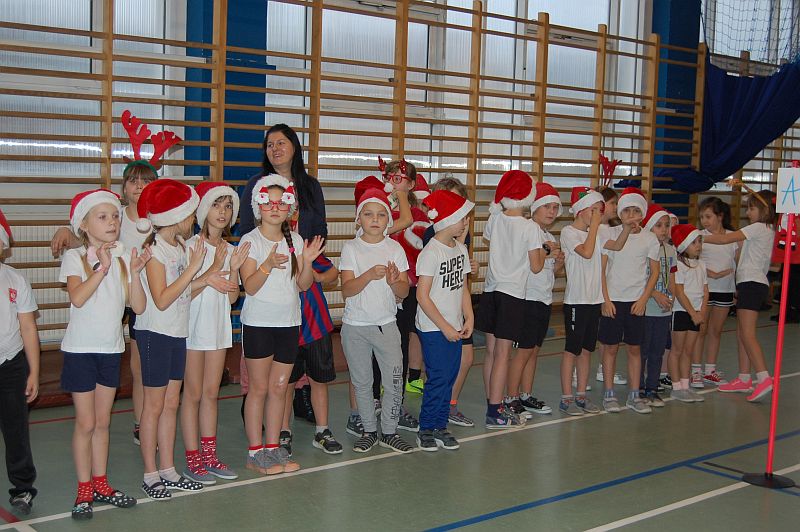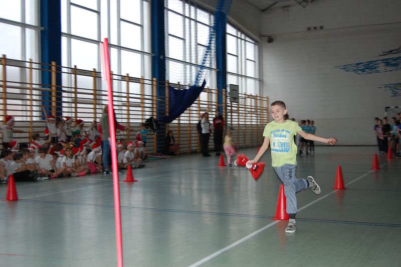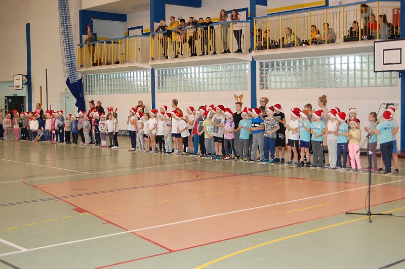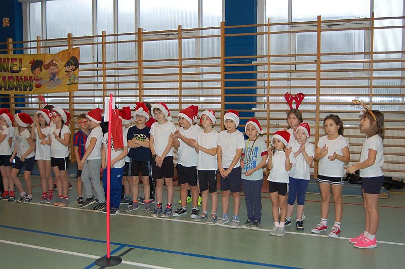 6 grudnia uczniowie klas I-III Szkoły Podstawowej oraz dzieci z oddziałów przedszkolnych wspólnie wzięli udział w Mikołajkowym Turnieju Gier i Zabaw. Uroczystego otwarcia zawodów dokonał dyrektor Jarosław Samborski. Uczniowie w czerwonych czapkach Mikołaja rozpoczęli turniej od zaśpiewania przygotowanych piosenek o tematyce mikołajkowej. Każda z drużyn składała się z 10 uczniów. Zawodom towarzyszyły ogromne emocje, wszyscy uczestnicy starali się wygrać, a wychowawcy klas i rodzice dzielnie im kibicowali.