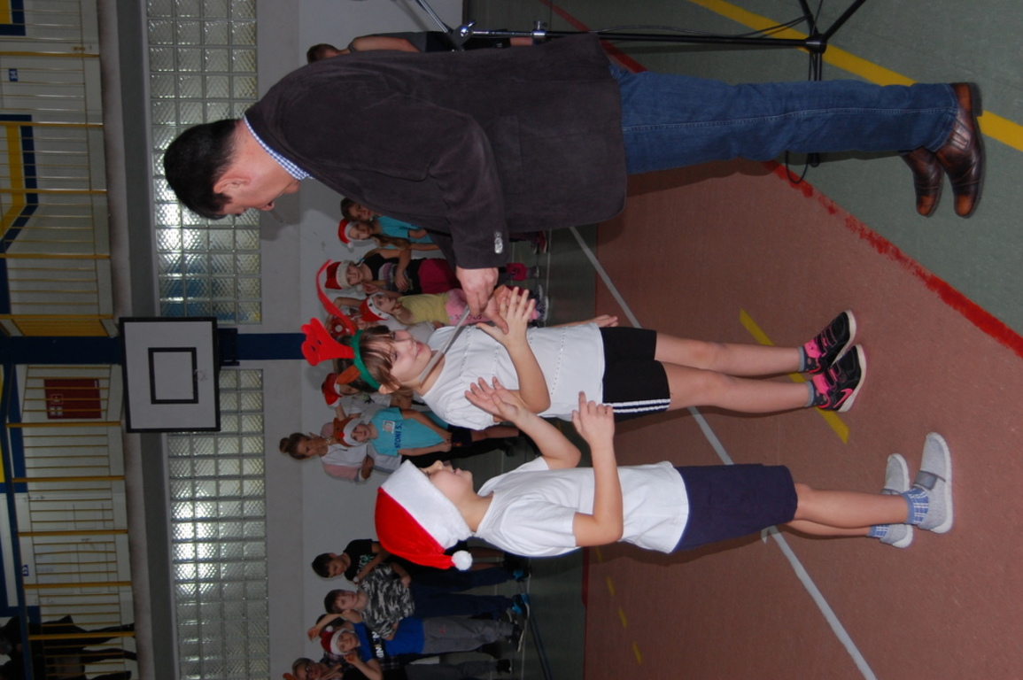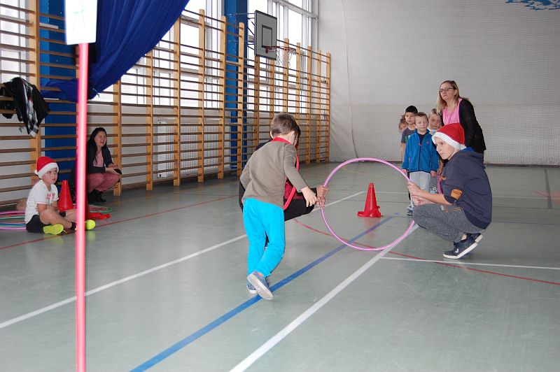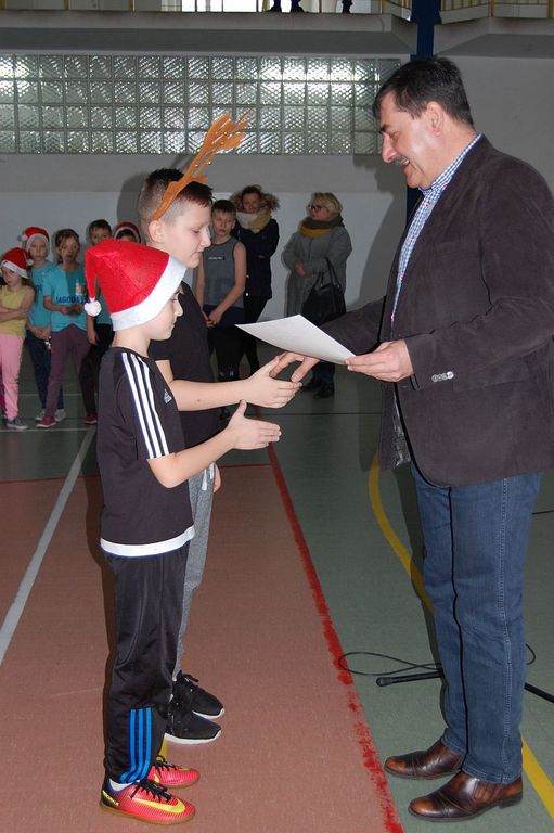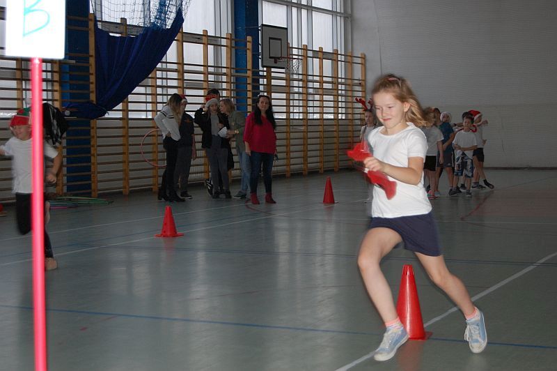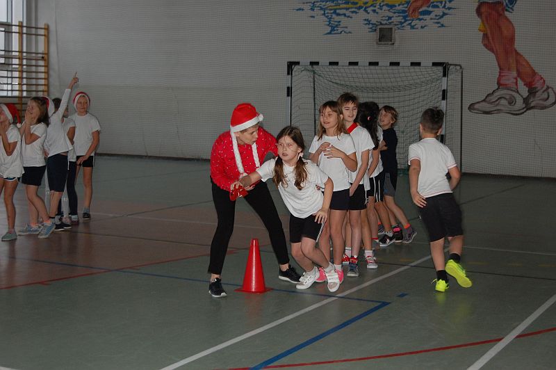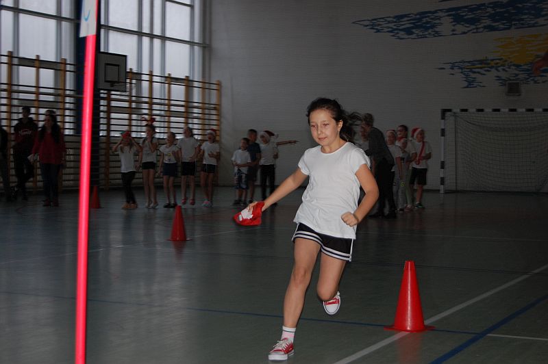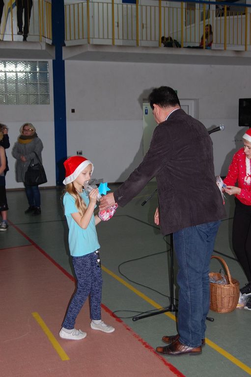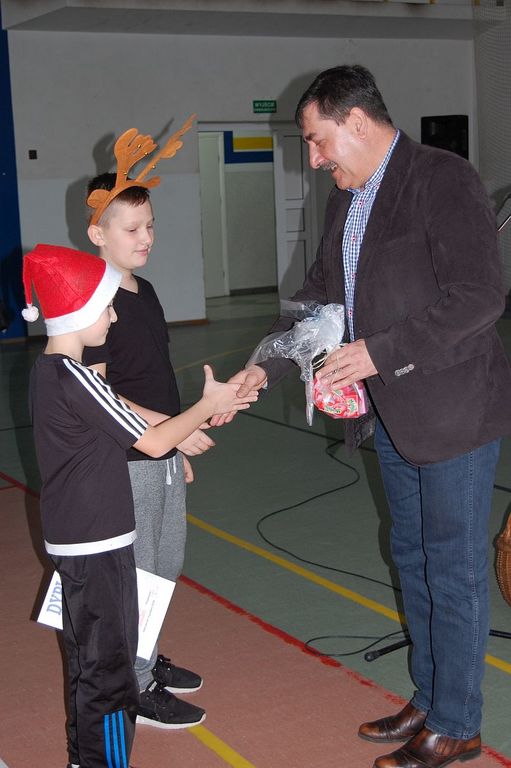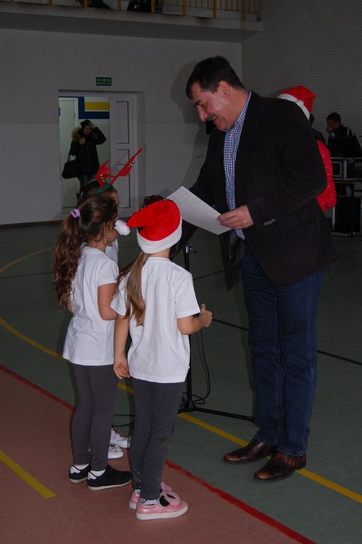 6 grudnia uczniowie klas I-III Szkoły Podstawowej oraz dzieci z oddziałów przedszkolnych wspólnie wzięli udział w Mikołajkowym Turnieju Gier i Zabaw. Uroczystego otwarcia zawodów dokonał dyrektor Jarosław Samborski. Uczniowie w czerwonych czapkach Mikołaja rozpoczęli turniej od zaśpiewania przygotowanych piosenek o tematyce mikołajkowej. Każda z drużyn składała się z 10 uczniów. Zawodom towarzyszyły ogromne emocje, wszyscy uczestnicy starali się wygrać, a wychowawcy klas i rodzice dzielnie im kibicowali.