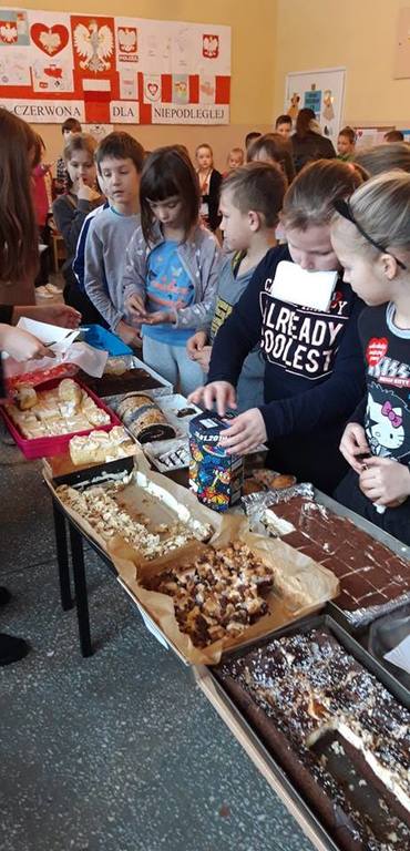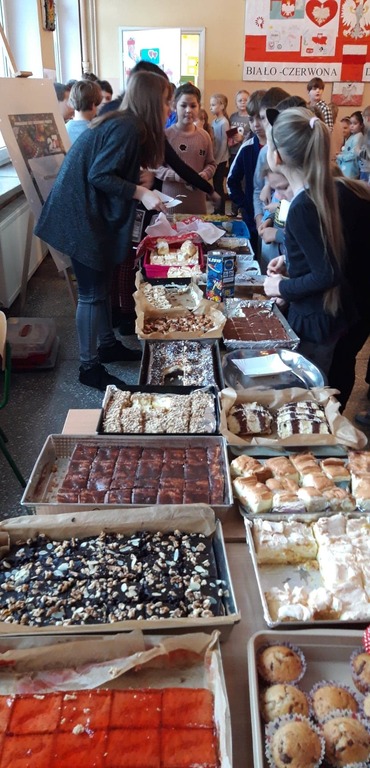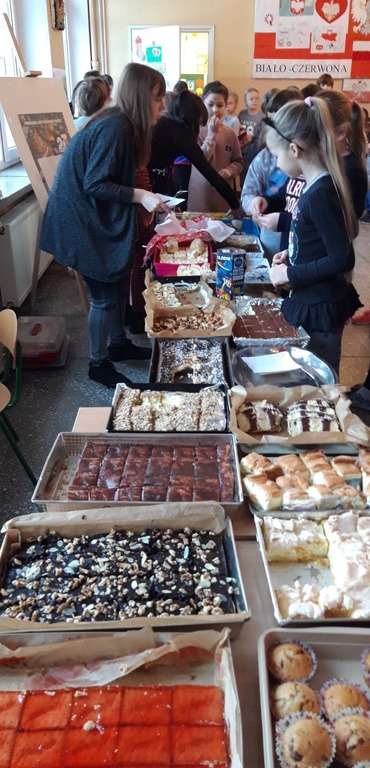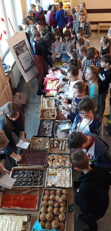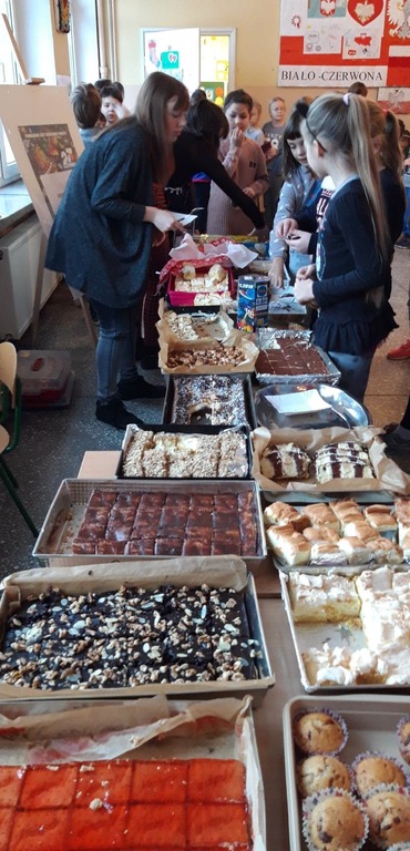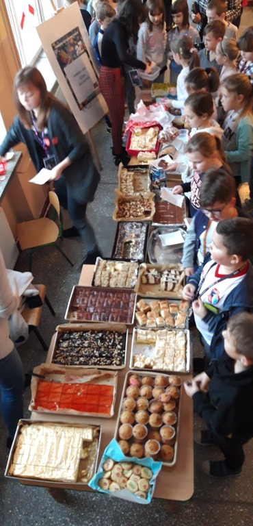 Wcześniej odbyły si e kiermasze ciast w naszej szkole, żłobku i przedszkolu, gdzie w sumie zebraliśmy 3740 zł, za co należą się wielkie i gorące podziękowania wszystkim uczniom oraz rodzicom zaangażowanym w prace związane z wypiekami oraz niezwykle atrakcyjną formę ich sprzedaży.