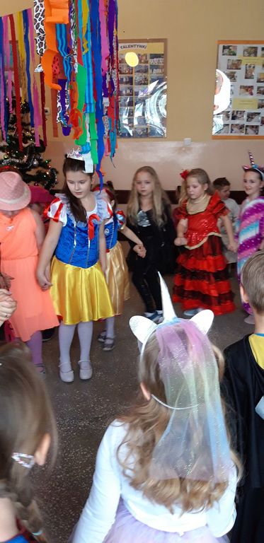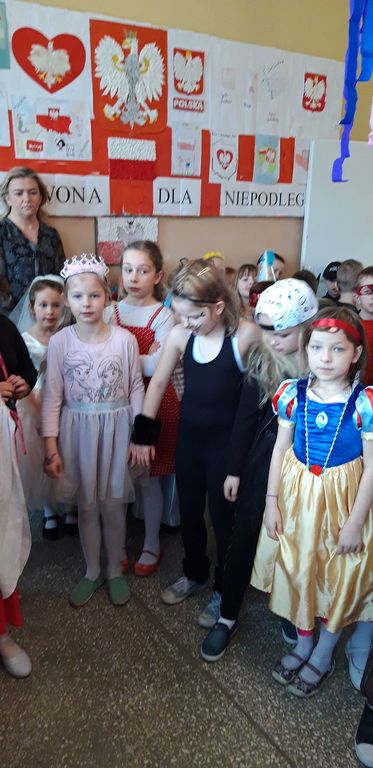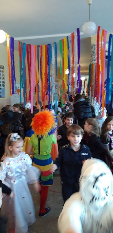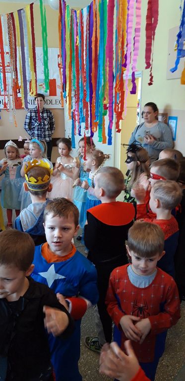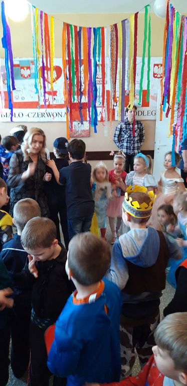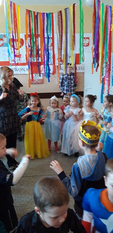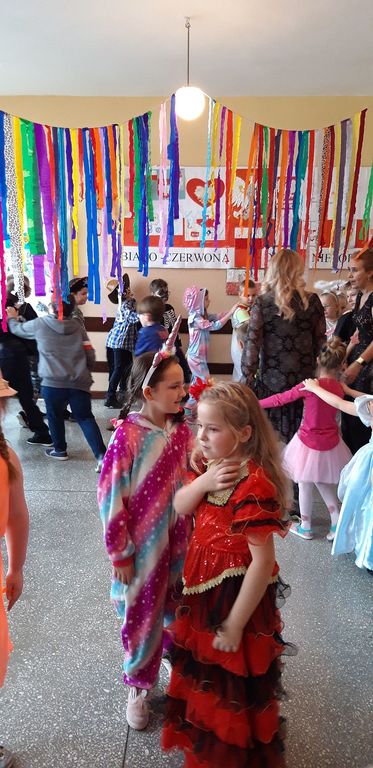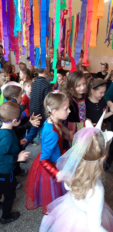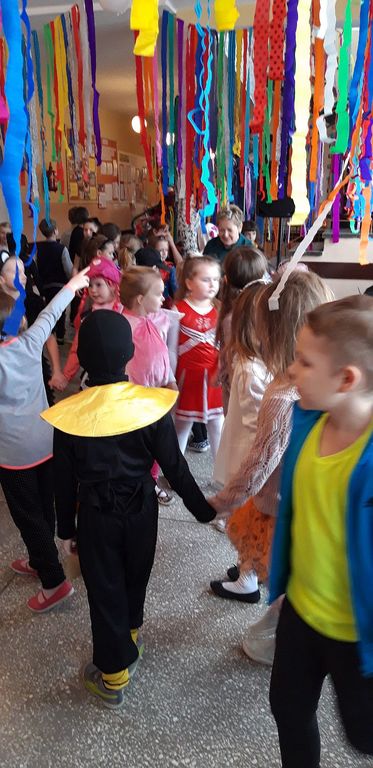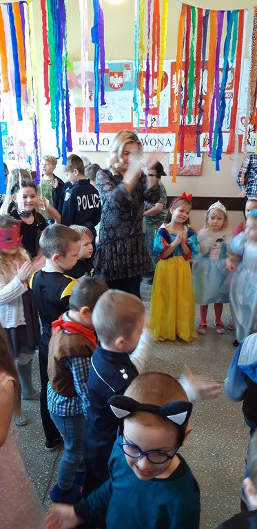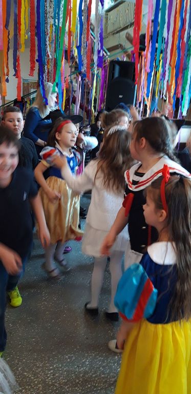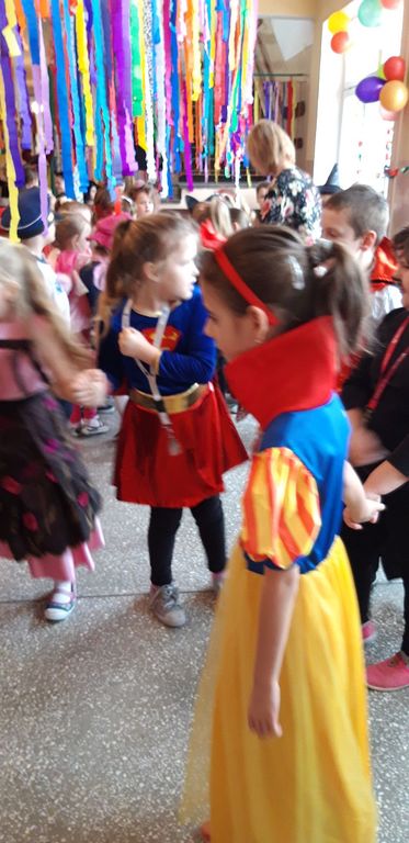 W środę 30 stycznia 2019 r. w naszej szkole odbył się bal karnawałowy dla uczniów kl. O – III. Był to dzień niecierpliwie oczekiwany przez wszystkie dzieci. Tego dnia szkolny korytarz zamienił się w salę balową, były łańcuchy, serpentyny, balony. Zjawiskowy wygląd wprowadził dzieci w wesoły nastrój i zachęcił do wspólnej zabawy. Dzieci przebrane w kolorowe stroje wcieliły się w bohaterów znanych bajek i filmów. Wszyscy przy dźwiękach muzyki bawili się wyśmienicie, a podczas przerwy nie zabrakło oczywiście słodkiego poczęstunku.