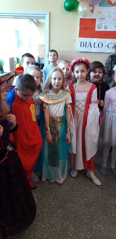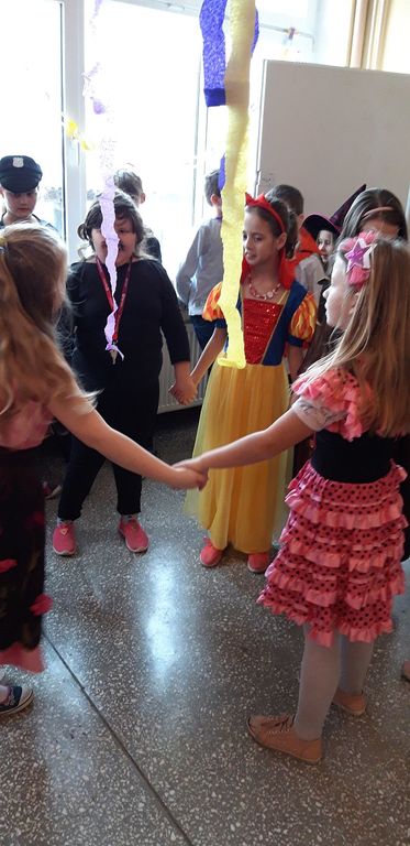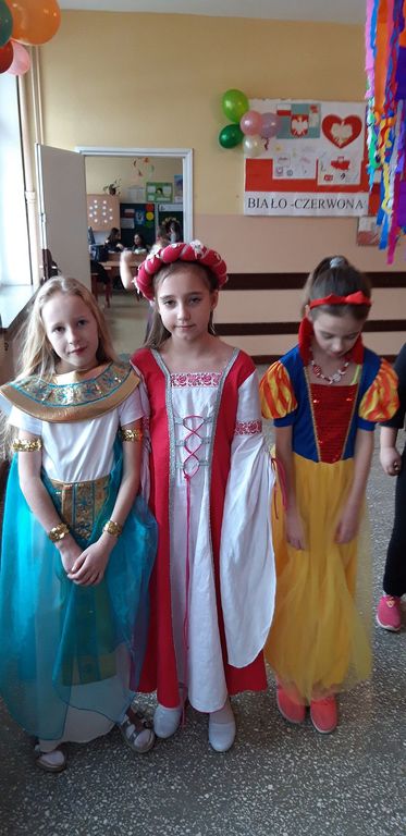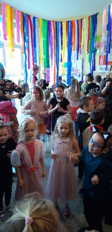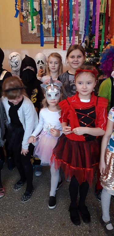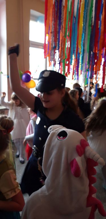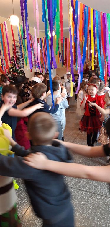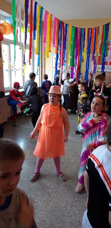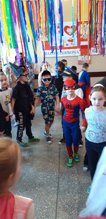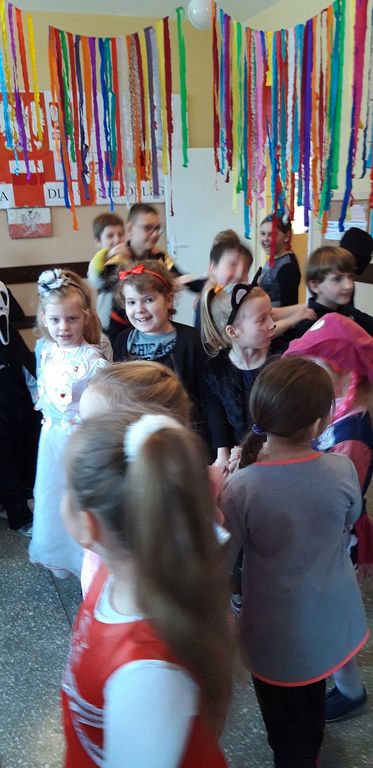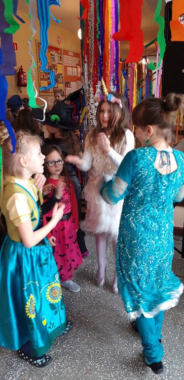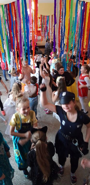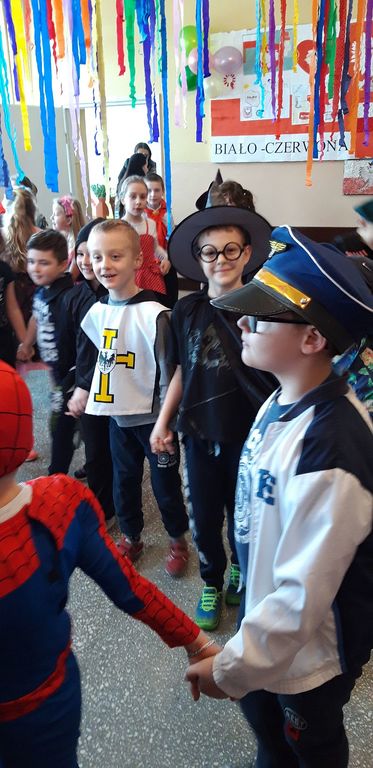 W środę 30 stycznia 2019 r. w naszej szkole odbył się bal karnawałowy dla uczniów kl. O – III. Był to dzień niecierpliwie oczekiwany przez wszystkie dzieci. Tego dnia szkolny korytarz zamienił się w salę balową, były łańcuchy, serpentyny, balony. Zjawiskowy wygląd wprowadził dzieci w wesoły nastrój i zachęcił do wspólnej zabawy. Dzieci przebrane w kolorowe stroje wcieliły się w bohaterów znanych bajek i filmów. Wszyscy przy dźwiękach muzyki bawili się wyśmienicie, a podczas przerwy nie zabrakło oczywiście słodkiego poczęstunku.