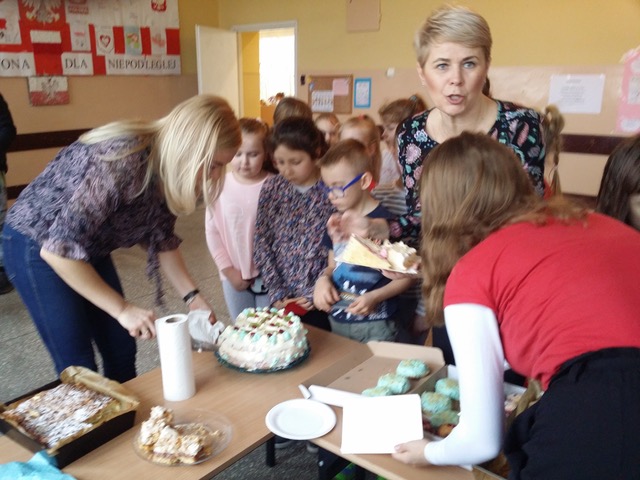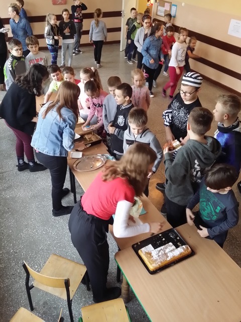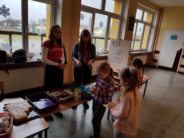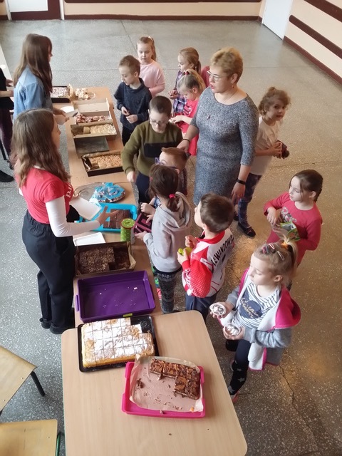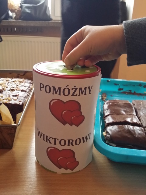 Dnia 6 lutego b.r. na terenie Szkoły Podstawowej w Debrznie odbył się kiermasz ciast w ramach akcji „Gramy i zbieramy dla Wiktora.” Uczniowie ze Szkolnego Koła Caritas i z sekcji charytatywnej działającej w zakresie wolontariatu Samorządu Szkolnego wzięli udział w rozprowadzaniu ciast i zbiórce ofiar do puszki na ten szczytny cel. Pomysł zorganizowania kiermaszu ciast wyszedł od pani Renaty Szymanówki - wychowawcy klasy, do której ten uczeń jest przydzielony. Otwartość i wrażliwość serc dzieci była widoczna przy zakupie przepysznych ciast. Udało się pozyskać 667,30zł, by wspomóc leczenie i rehabilitacje Wiktora, ucznia klasy I b. Dziękujemy wszystkim zaangażowanym rodzicom za wspaniałe wypieki i wsparcie naszej inicjatywy.
