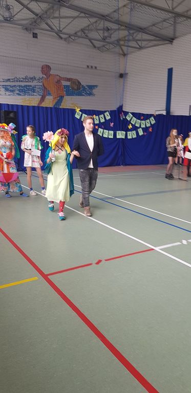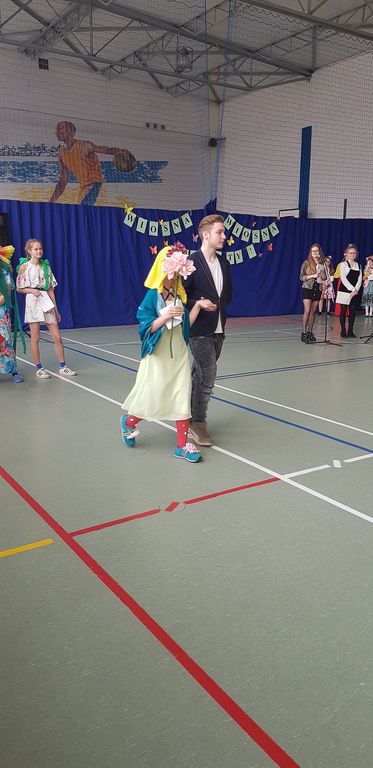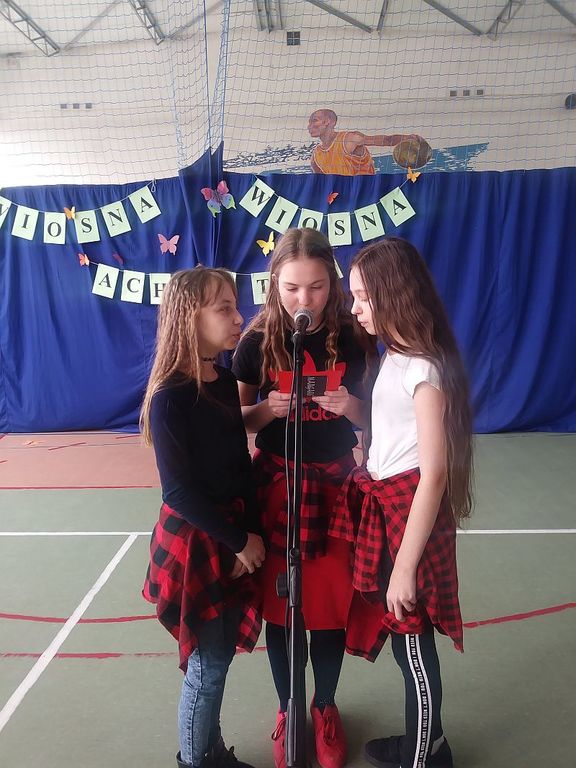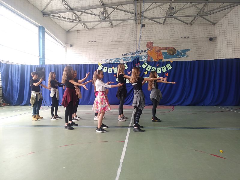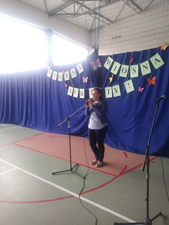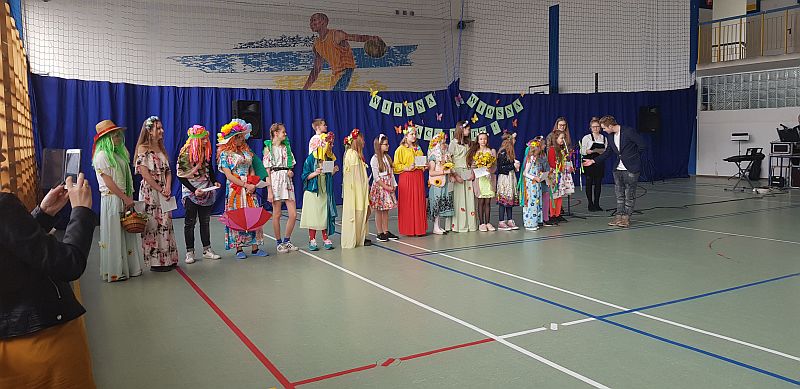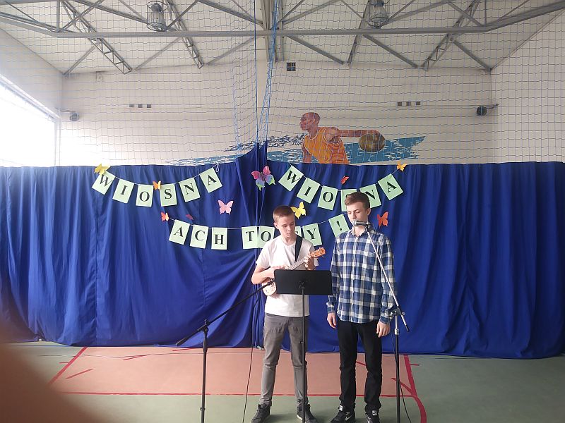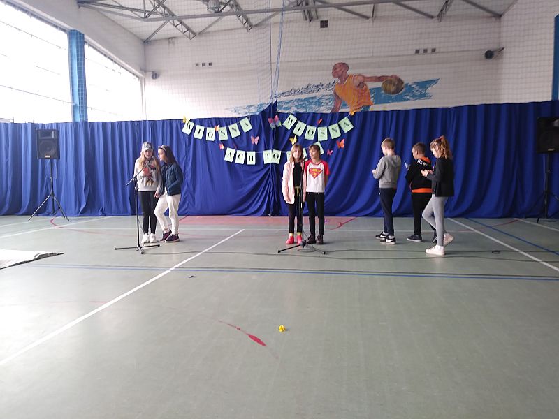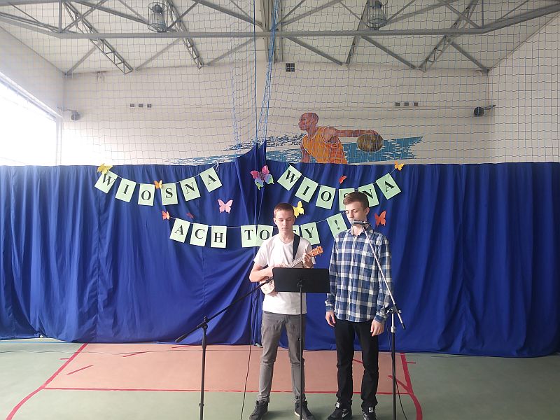 Pierwszym akcentem było przedstawienie się uczniów przebranych za Panią Wiosnę. Tę konkurencję wygrała Dajana Prymas, uczennica z klasy VIIIA, która swoim przebraniem zachwyciła publiczność i jury. Następnie każda klasa prezentowała się w tańcu, muzyce lub odgrywanych skeczach. Tegorocznymi zwycięzcami zostali Kasjan Nielek i Dominik Mudyna, uczniowie IIIb gimnazjum.