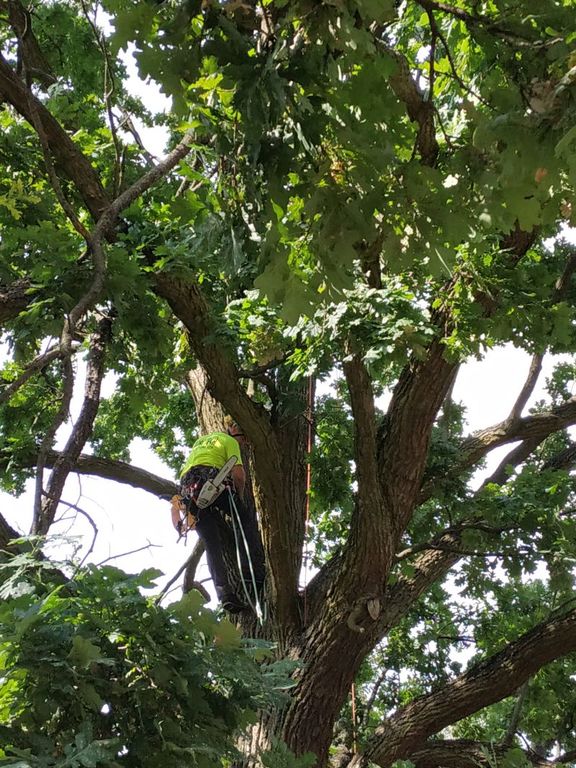 Otóż w wakacje na jednym z dębów dokonano usunięcia suchych i niebezpiecznych gałęzi. Prace te były przeprowadzone przez firmę, która zajmuje się pielęgnacją zieleni.