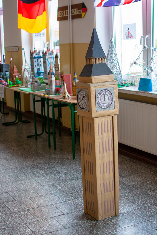Nasza szkoła przyłączyła się do obchodów Europejskiego Dnia Języków Obcych. W środę oraz czwartek 25-26 września przywitały nas korytarze szkoły ozdobione flagami europejskimi oraz plakatami wykonanymi przez uczniów naszej szkoły. Każdy z uczniów i odwiedzających szkołę rodziców oraz gości mógł również podziwiać wspaniałą wystawę „Budowle Europy w 3D”. W ramach zorganizowanego konkursu uczniowie klas I-VIII wykonali przepiękne makiety znanych budowli europejskich. Można było podziwiać 28 prac, które były efektem ciekawych pomysłów i ogromnego wkładu pracy zarówno uczniów, jak i ich rodziców.