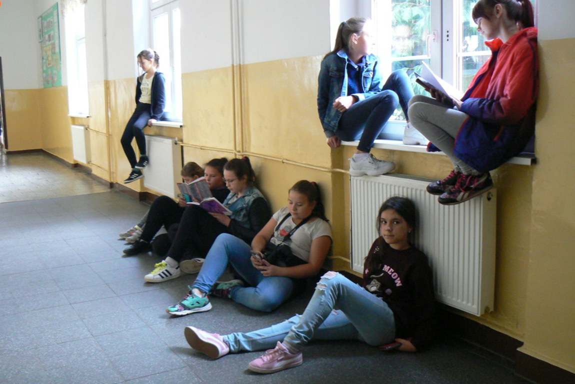 Kółko fotograficzne naszej szkoły zaangażowało się w kampanię na rzecz projektu nr 6 PRZERWA NA RELAX rywalizującego o realizację w budżecie obywatelskim na rok 2020. Zdjęcia zrobione przez uczniów pokazują w jaki sposób spędzają czas między lekcjami. Wszystkim bardzo doskwiera brak siedzisk na szkolnych korytarzach, co widać na przedstawionych zdjęciach.