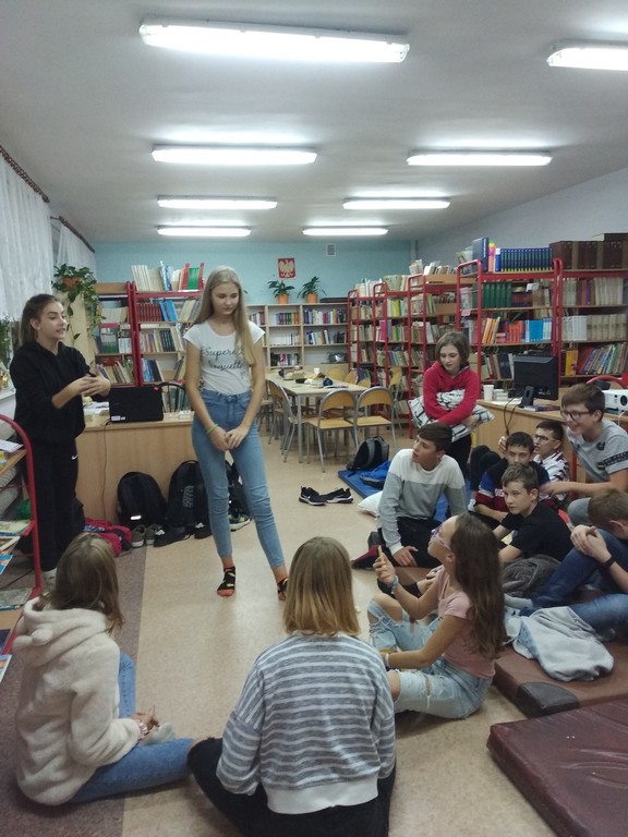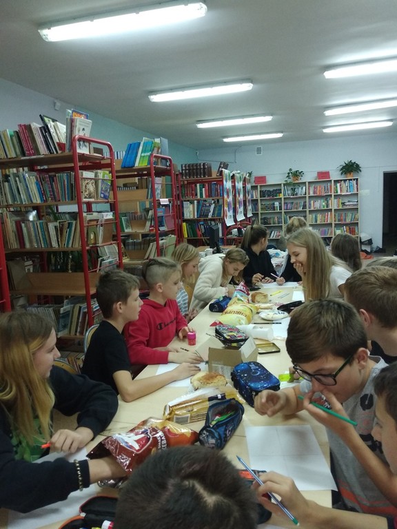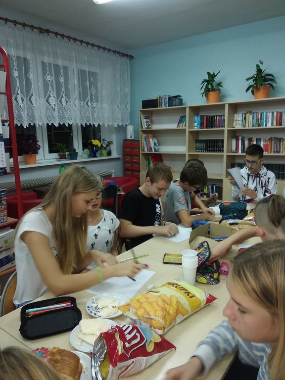 Uczestnicy projektu, uczniowie klasy VIIb, pojawili się w bibliotece o godzinie 18.00.