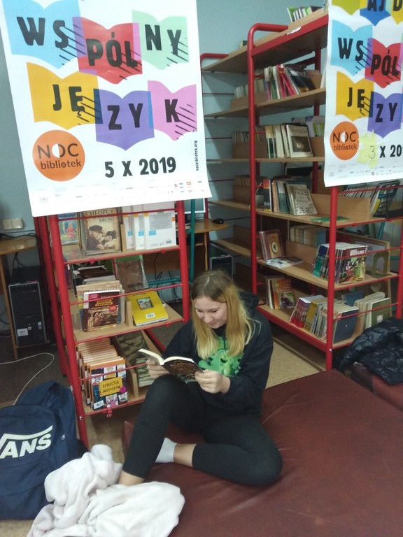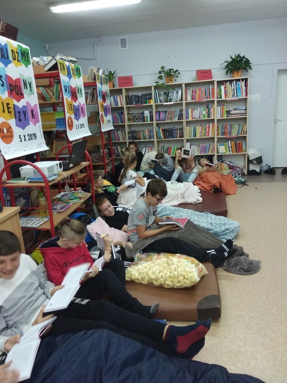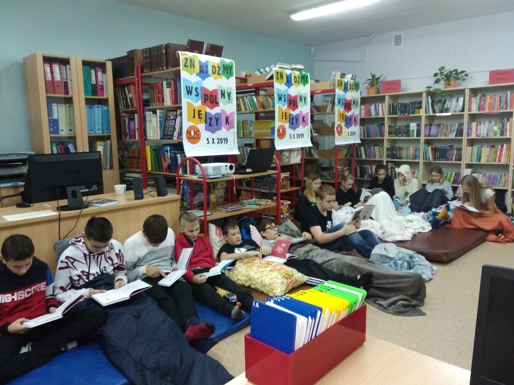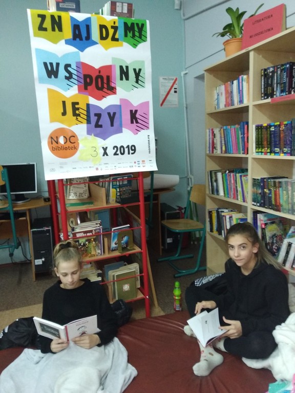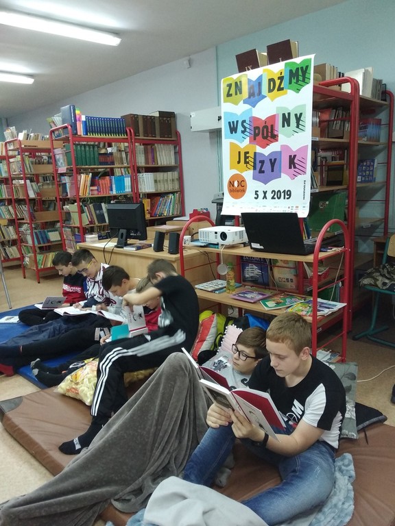 Noc Bibliotek to wielkie święto bibliotek i czytania. Akcja ta w niekonwencjonalny sposób zachęca do korzystania z zasobów bibliotek jako najbardziej otwartych i dostępnych instytucji kultury. V edycja ogólnopolskiej akcji Noc Bibliotek w naszej szkole odbyła się 3 października 2019r. w godz.18.00-21.00, pod hasłem "Znajdźmy wspólny język".