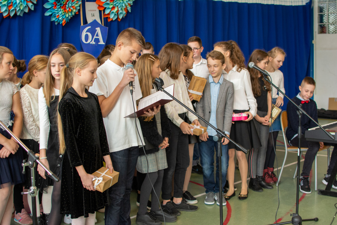 11. października 2019 r. w naszej szkole odbył się uroczysty apel z okazji Dnia Edukacji Narodowej. Uczniowie klas Va i VIa w imieniu całej społeczności szkolnej złożyli serdeczne życzenia wszystkim pracownikom naszej szkoły. Szczególne podziękowania za codzienny trud wkładany w przekazywanie wiedzy, zaangażowanie w kształtowanie postaw, uśmiech i dobre słowo usłyszeli nasi nauczyciele.