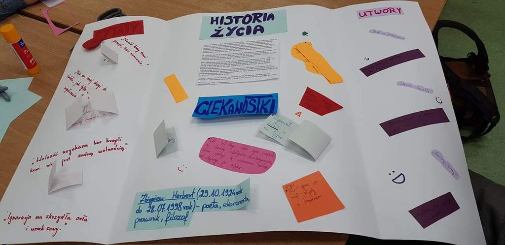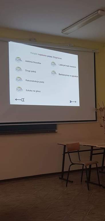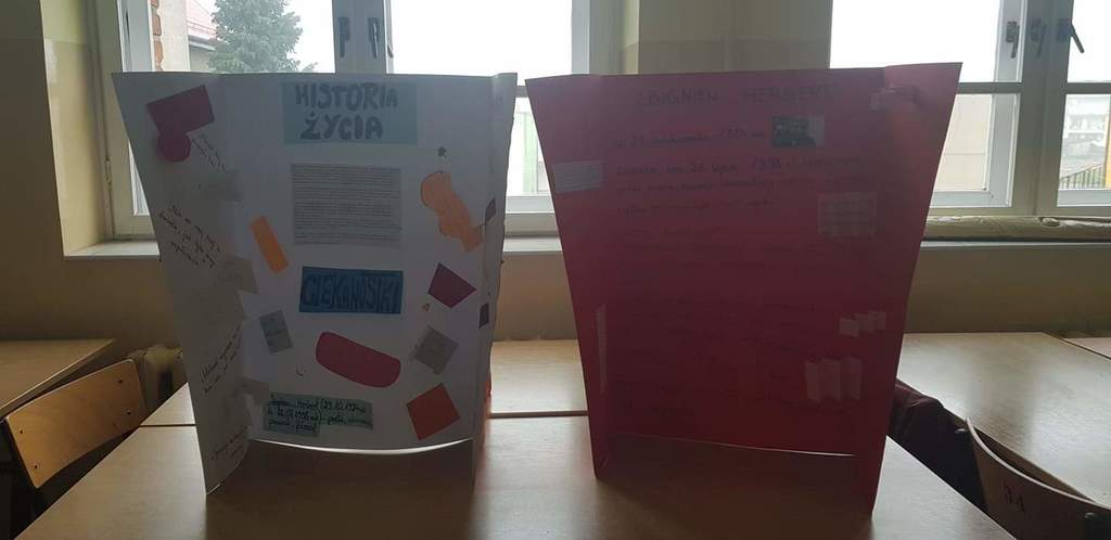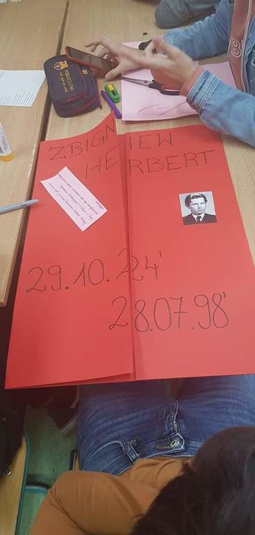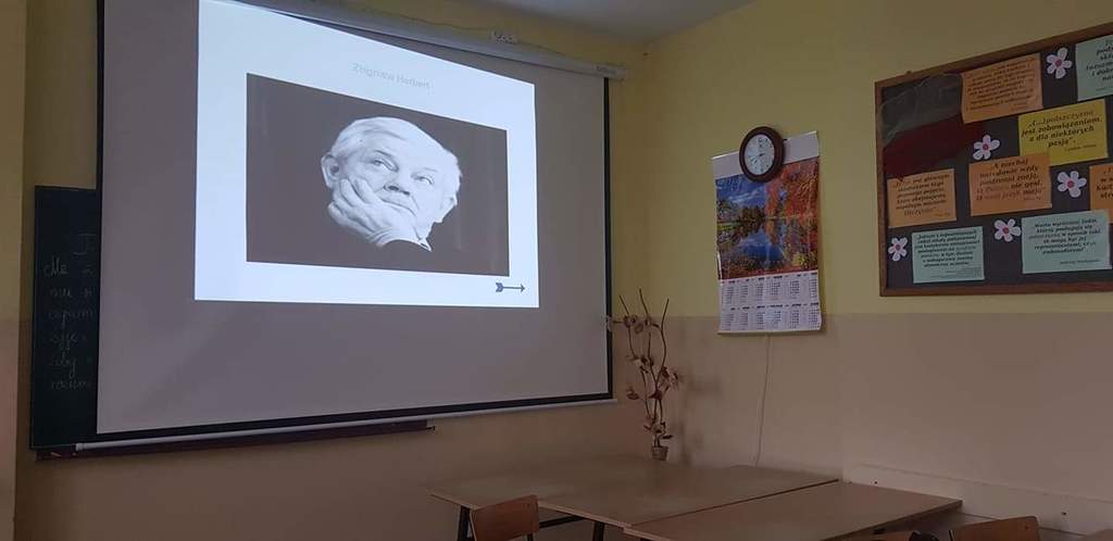 W czwartek 24 października 2019r. w naszej szkole odbyły się obchody 95. rocznicy urodzin wielkiego, polskiego poety Zbigniewa Herberta. Informacje o pisarzu zostały przygotowane przez VIIIa wraz z panią G. Mędrek - Maza. Podczas wieczornicy obejrzeliśmy dwie prezentacje przygotowane przez naszych kolegów, które rozlegle opowiadały o jego życiu i twórczości. Przygotowaliśmy również wspólnie scenariusz ukazujący kolejne historie z życia poety. Wzruszające fragmenty na emigracji i powrocie do ojczyzny wprawiły nas w melancholijny nastrój, pełen niepokojącej ciszy i rozmyśleń. Na koniec wszyscy uczniowie otrzymali pamiątki - cytaty, które czytaliśmy i wspólnie interpretowaliśmy.