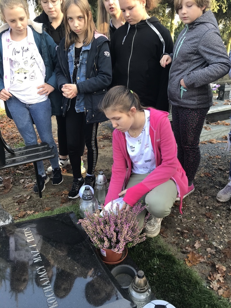 W ramach akcji "Szkoła pamięta" uczniowie wraz z nauczycielami odwiedzili lokalne miejsca pamięci pomnik "Pamięci Pokoleń", "Plac Lotników ", mury obronne, Basztę Czarownic, uporządkowali i odwiedzili groby osób zasłużonych i cenionych w naszej społeczności lokalnej, zapalili znicze w miejscach związanych z ważnymi wydarzeniami historii lokalnej, odwiedzili groby nauczycieli.