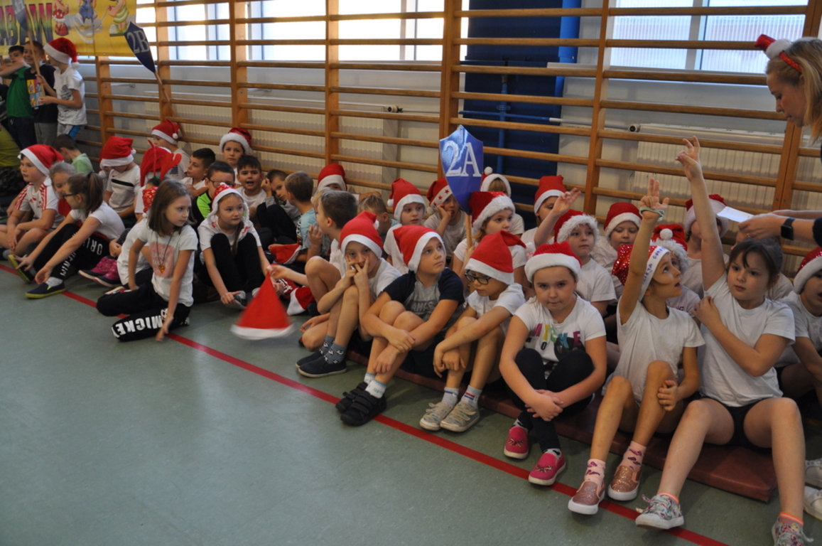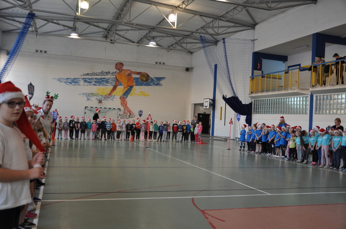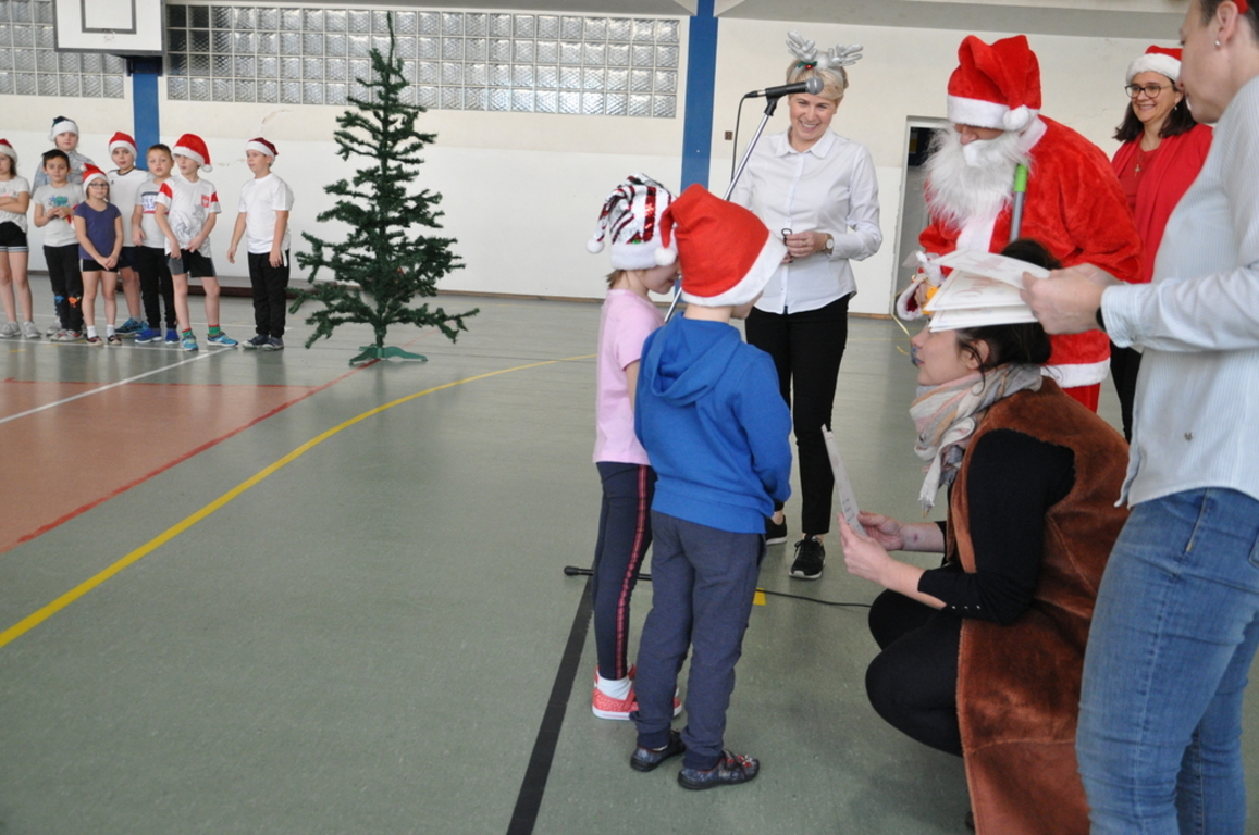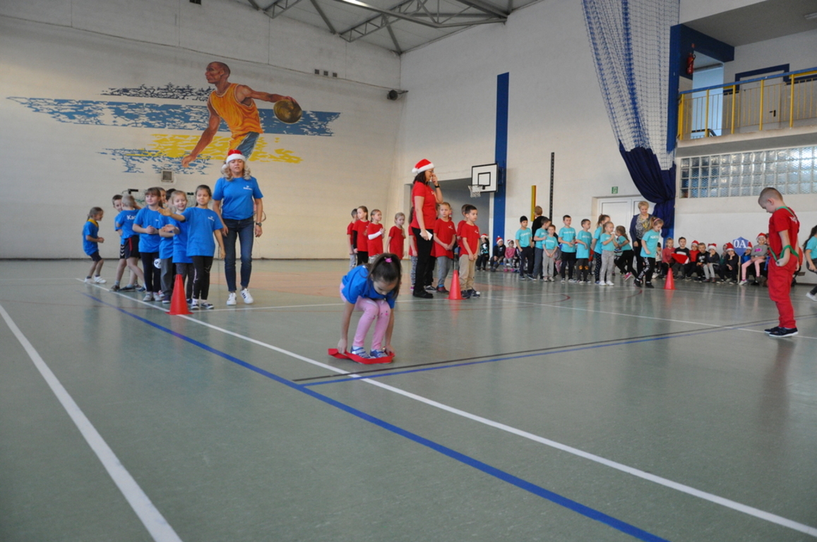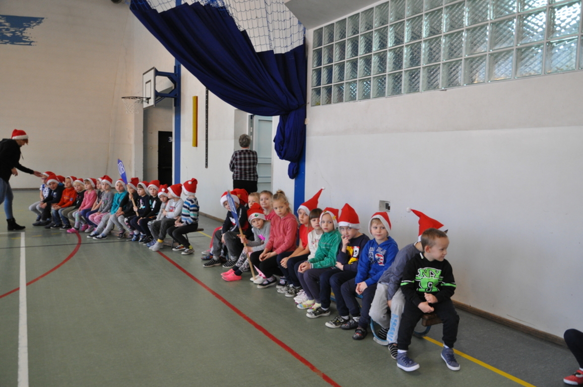 I tym wspólnym śpiewem uczniowie kl. I-III oraz dzieci z oddziałów przedszkolnych 3 grudnia zaprosili Mikołaja na sportowe zmagania w ramach Mikołajkowego Turnieju Gier i Zabaw, który był doskonałą okazją do zabawy na sportowo. Drużyny rywalizowały w 3 konkurencjach. Wszyscy uczniowie walczyli o wygraną, a jednocześnie bardzo dobrze się bawili.
