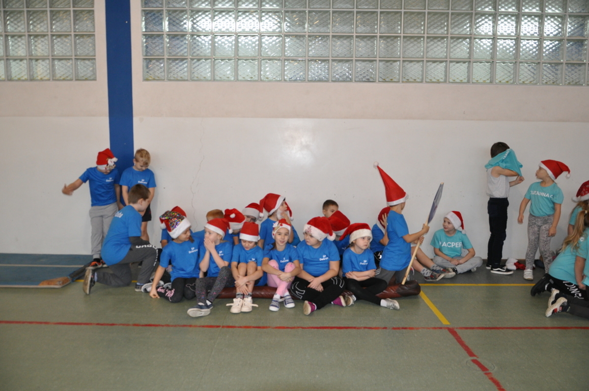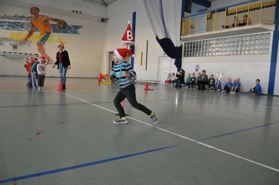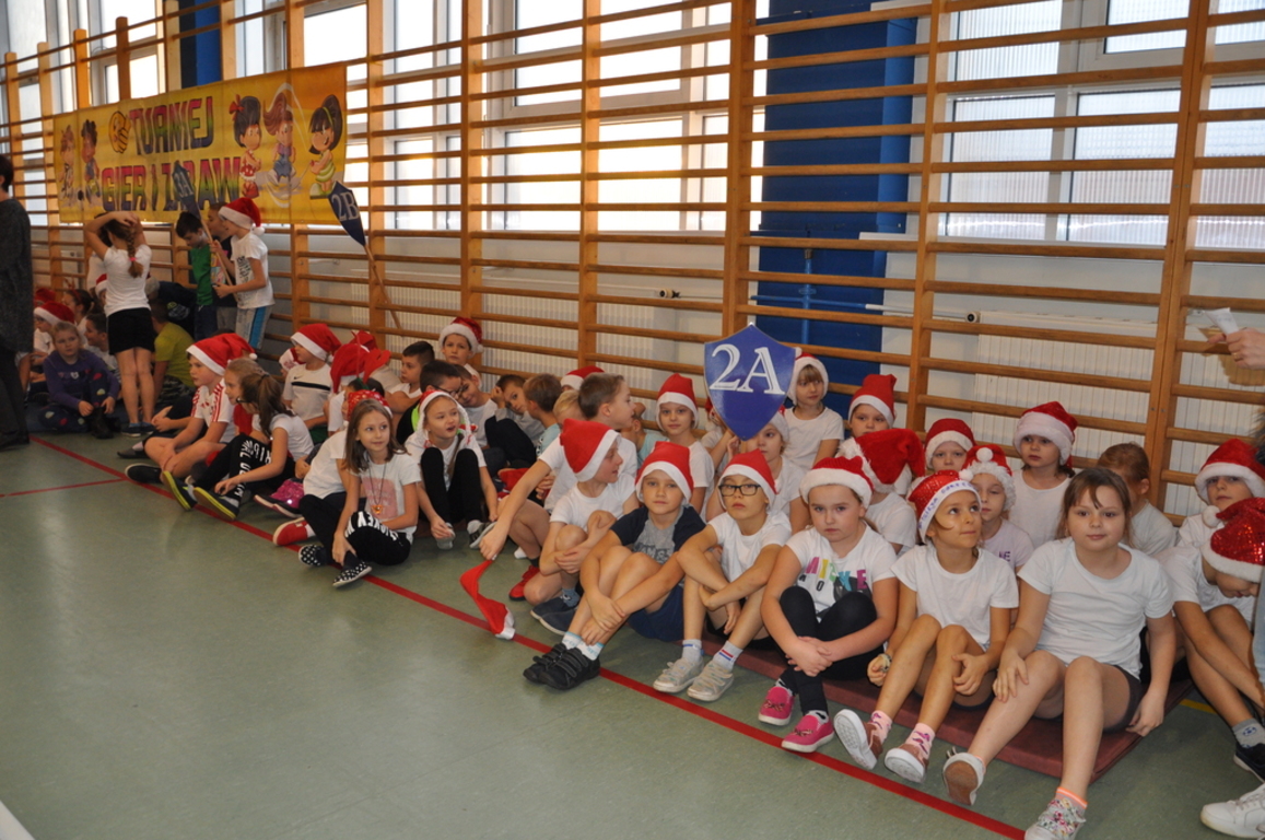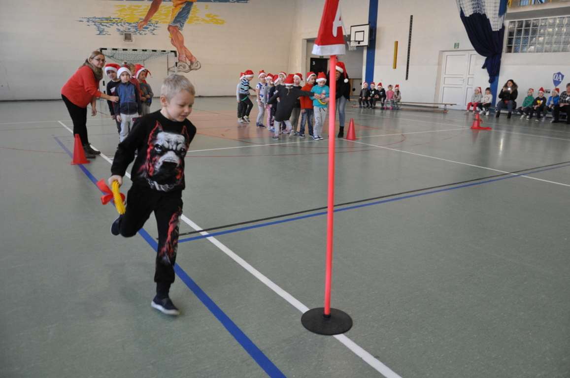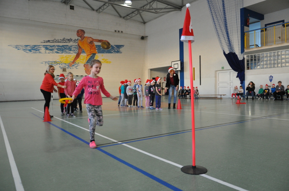 I tym wspólnym śpiewem uczniowie kl. I-III oraz dzieci z oddziałów przedszkolnych 3 grudnia zaprosili Mikołaja na sportowe zmagania w ramach Mikołajkowego Turnieju Gier i Zabaw, który był doskonałą okazją do zabawy na sportowo. Drużyny rywalizowały w 3 konkurencjach. Wszyscy uczniowie walczyli o wygraną, a jednocześnie bardzo dobrze się bawili.