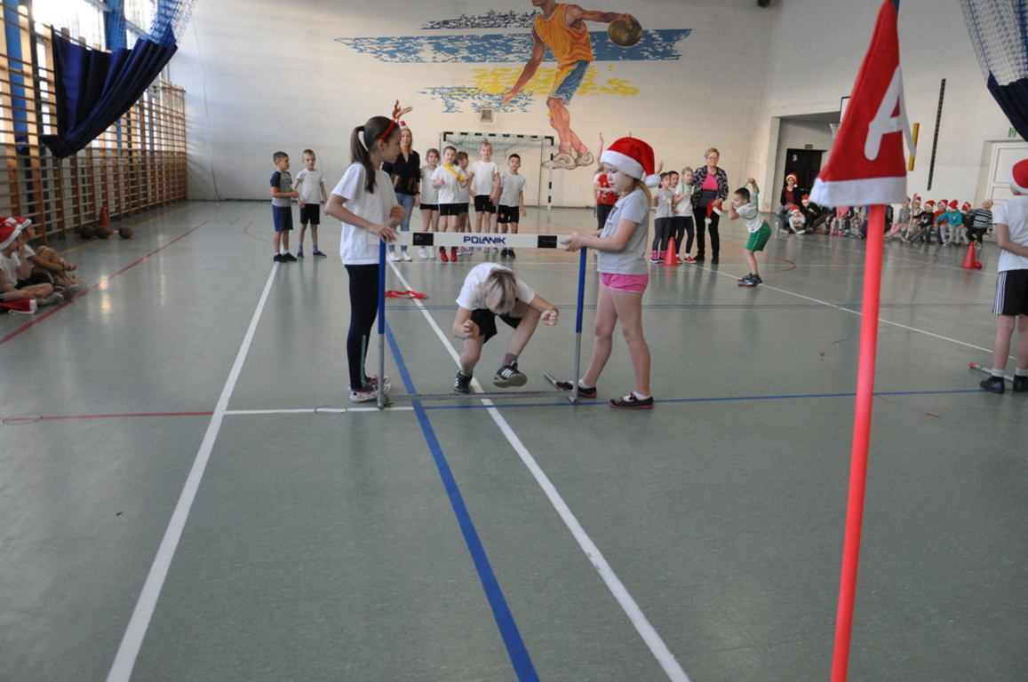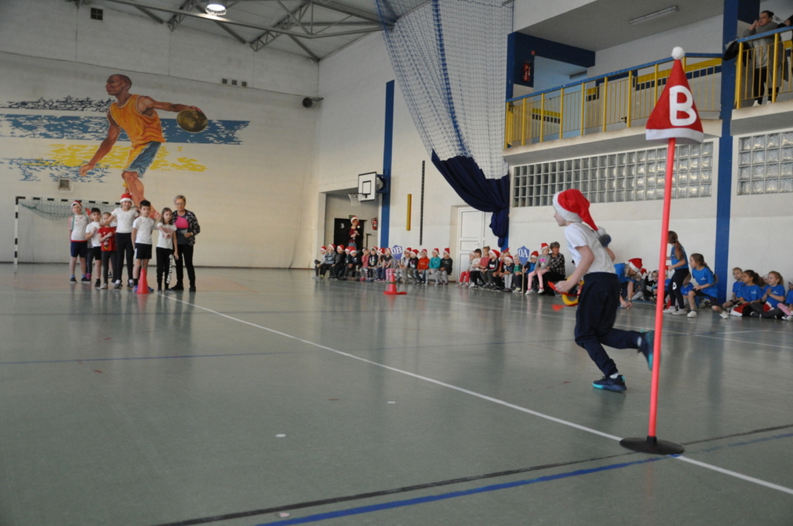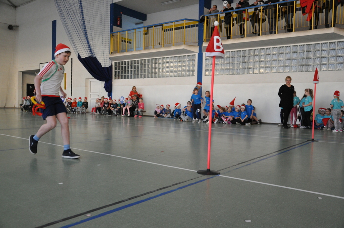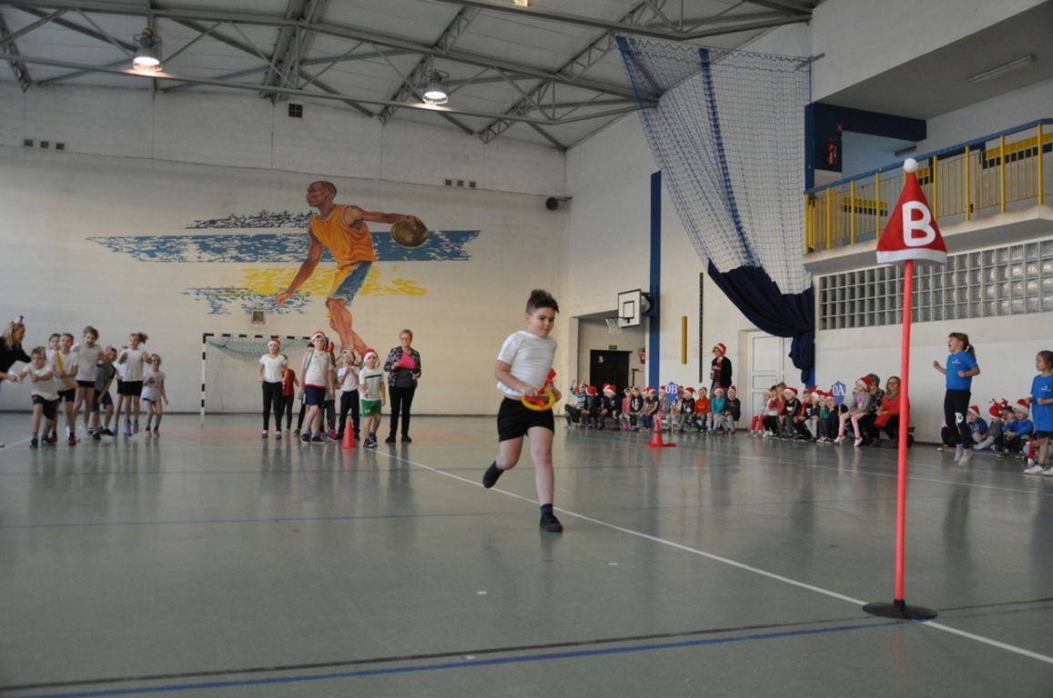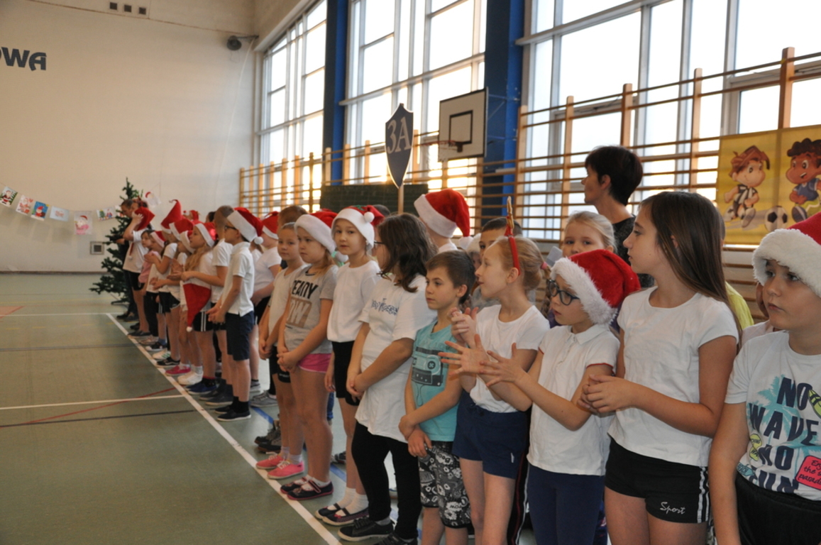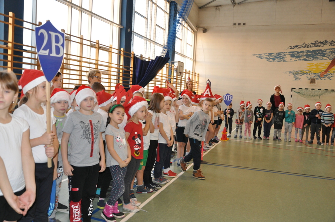 I tym wspólnym śpiewem uczniowie kl. I-III oraz dzieci z oddziałów przedszkolnych 3 grudnia zaprosili Mikołaja na sportowe zmagania w ramach Mikołajkowego Turnieju Gier i Zabaw, który był doskonałą okazją do zabawy na sportowo. Drużyny rywalizowały w 3 konkurencjach. Wszyscy uczniowie walczyli o wygraną, a jednocześnie bardzo dobrze się bawili.