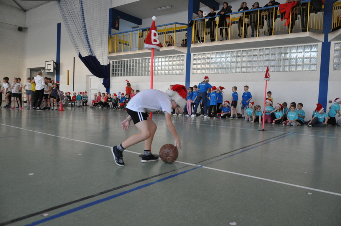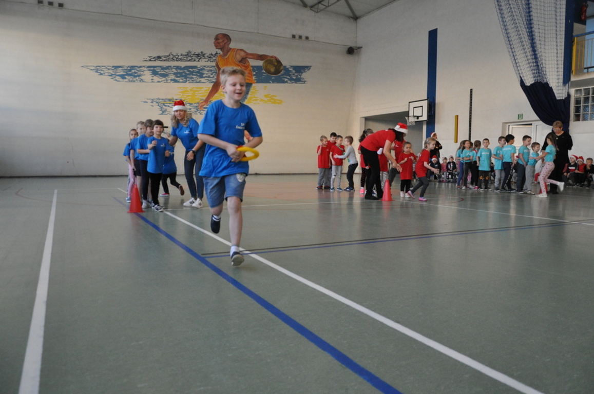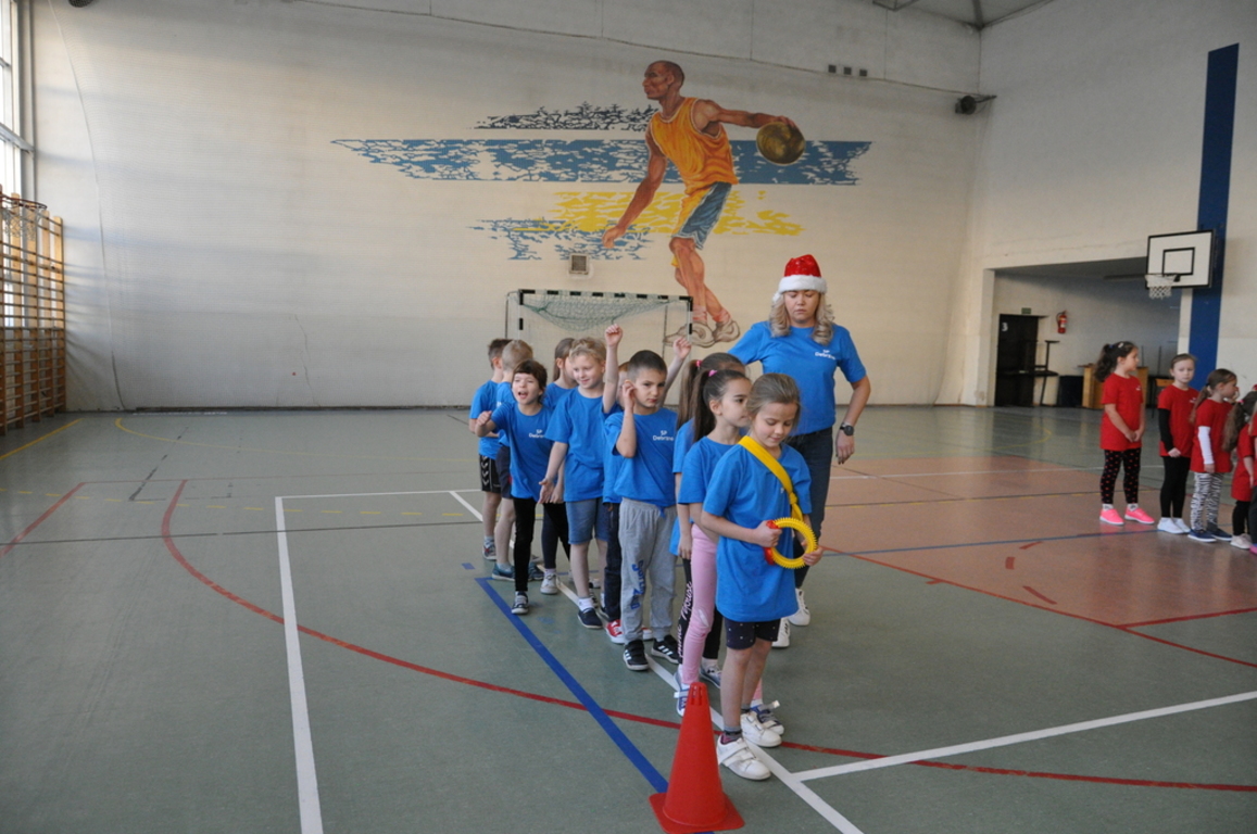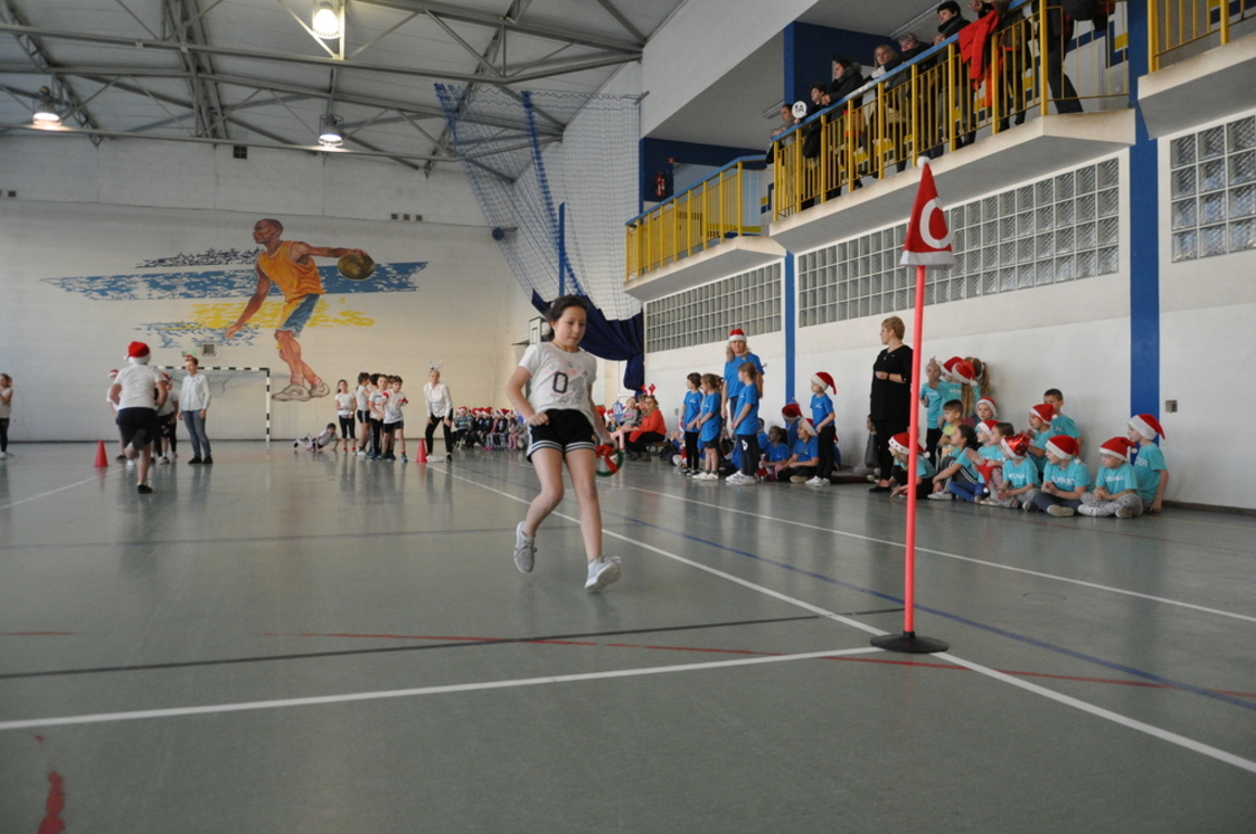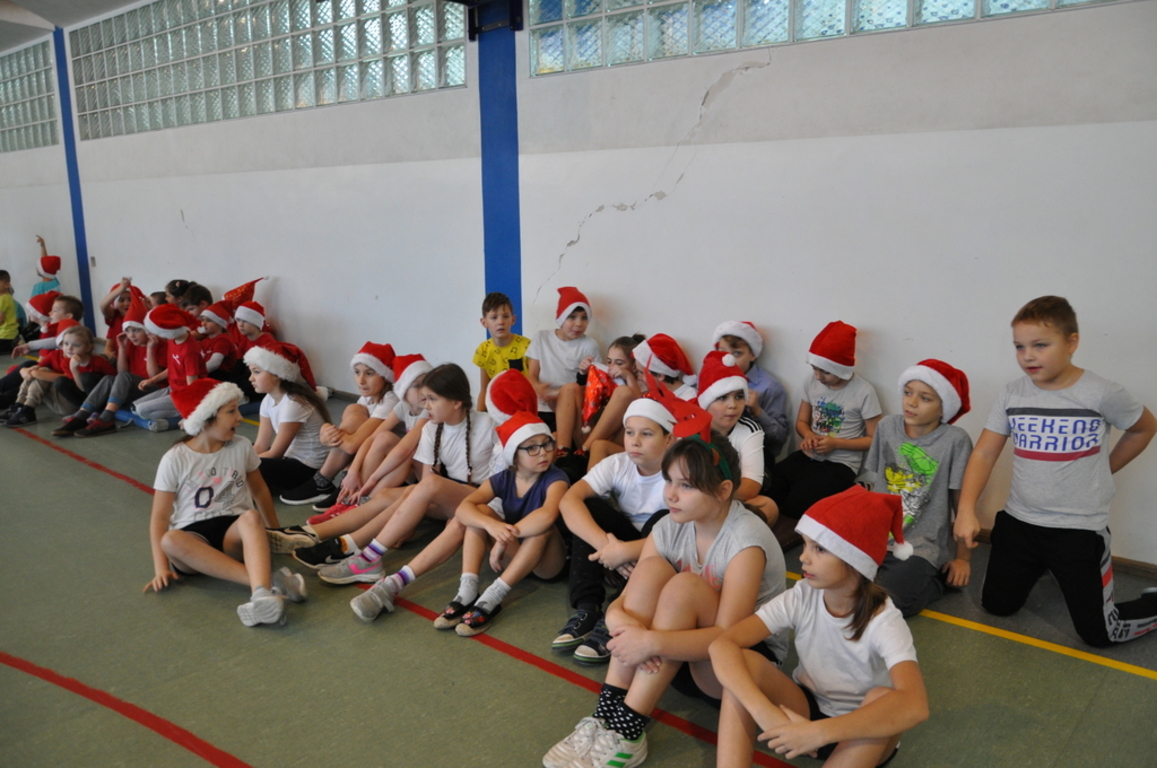 I tym wspólnym śpiewem uczniowie kl. I-III oraz dzieci z oddziałów przedszkolnych 3 grudnia zaprosili Mikołaja na sportowe zmagania w ramach Mikołajkowego Turnieju Gier i Zabaw, który był doskonałą okazją do zabawy na sportowo. Drużyny rywalizowały w 3 konkurencjach. Wszyscy uczniowie walczyli o wygraną, a jednocześnie bardzo dobrze się bawili.