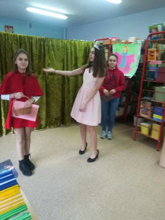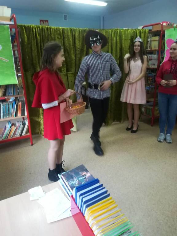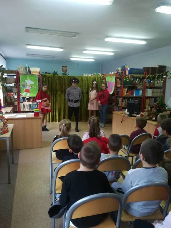 Pasowanie na czytelnika to oficjalne przyjęcie uczniów do grona czytelników biblioteki. Zanim jednak uczniowie złożyli przyrzeczenie, obejrzeli przedstawienie w wykonaniu uczniów kl.VIII b, w którym występował Czerwony Kapturek, Kot w butach, Krasnale, Kopciuszek i Królowa Książek. Podczas wspólnej zabawy pierwszaki rozpoznawały tytuły i bohaterów książek, rozwiązywały łamigłówki, zagadki i rebusy. Wykazały się wiedzą na temat właściwego zachowania się, wypożyczania książek z biblioteki.