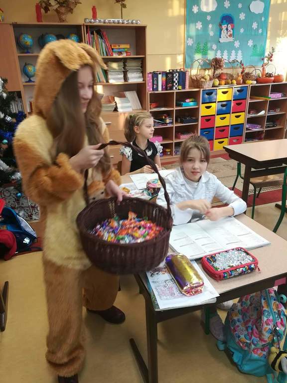) - żyrafa, kangurzyca i krokodyl zweryfikowali, czy zadania zostały wykonane, prosząc uczniów o zaśpiewanie pastorałki lub kolędy oraz złożenie życzeń "Wesołych Świąt!" w dowolnym obcym języku.