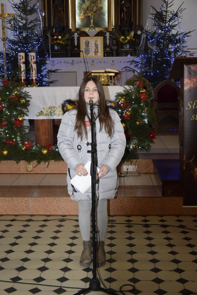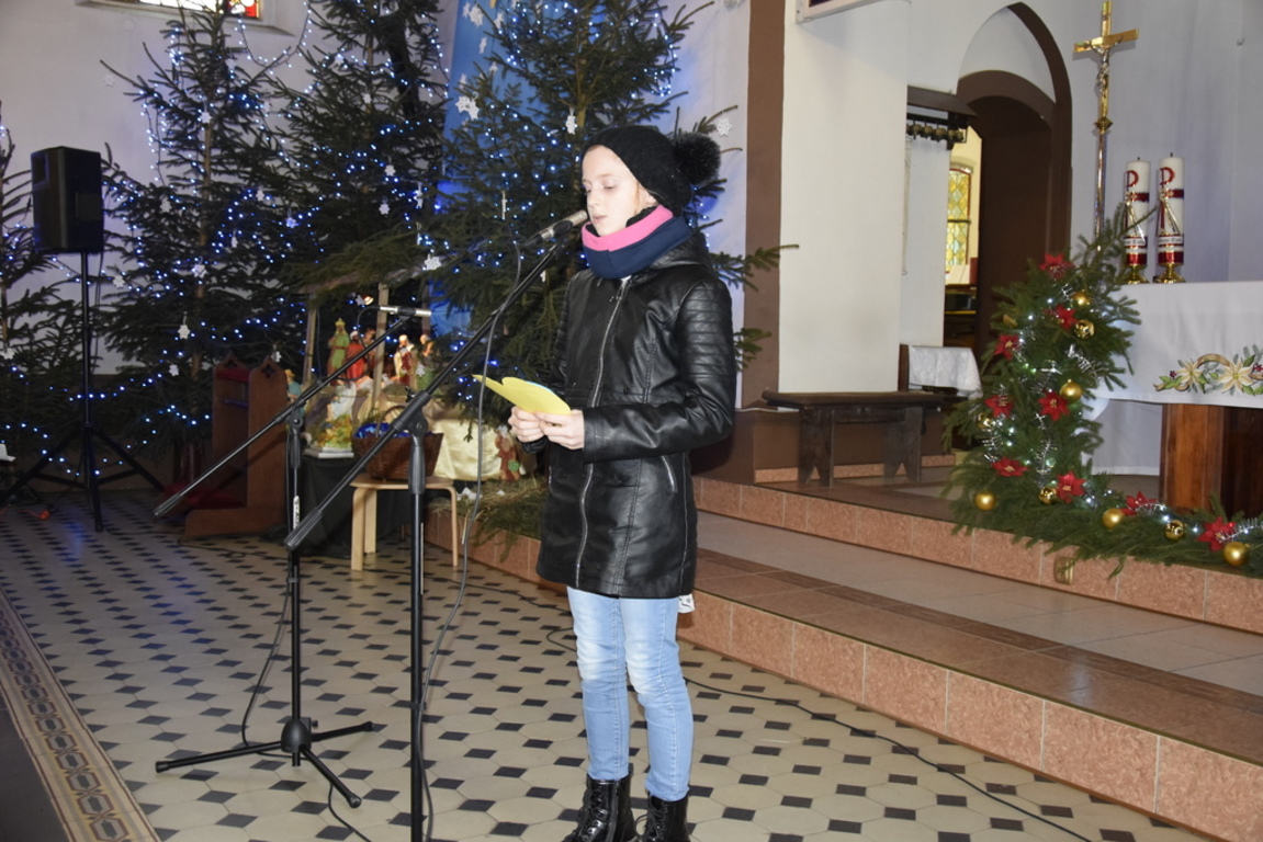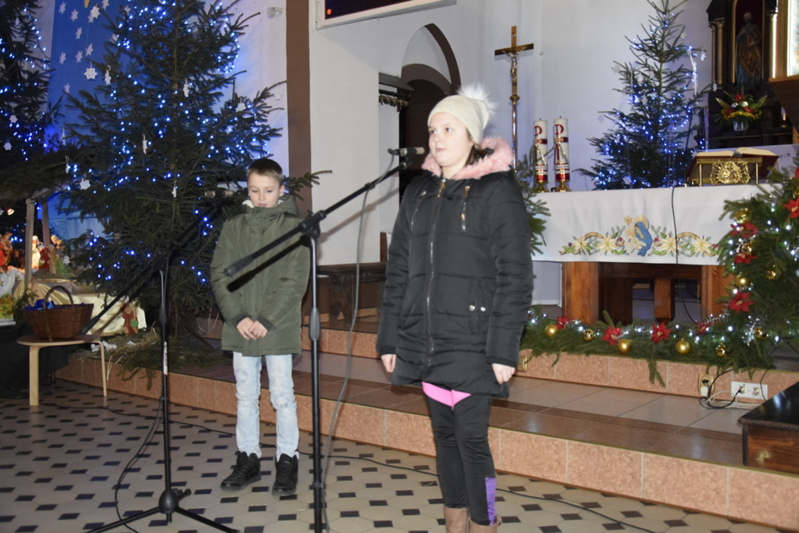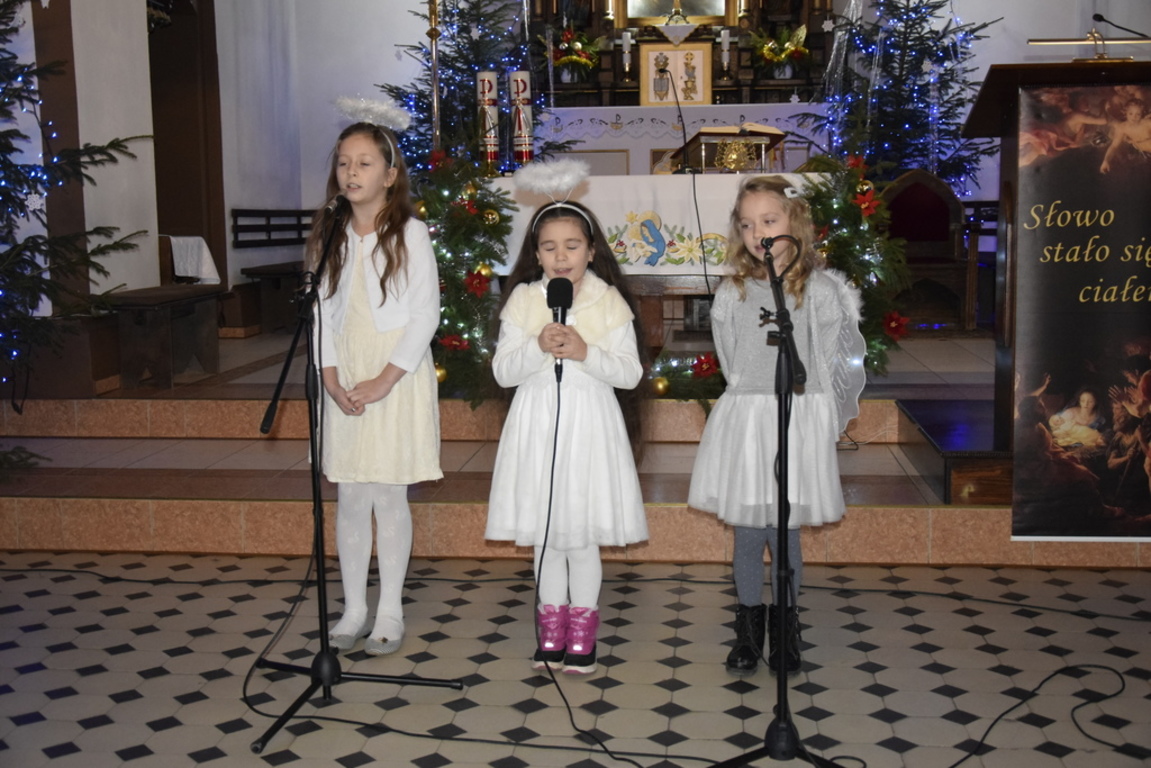 Uczestnicy mogli wykonać jedną wybraną przez siebie kolędę lub pastorałkę z podkładem muzycznym albo przy akompaniamencie gitary Ks. Zdzisława Cholewińskiego. Nad sprzętem i sprawami technicznymi czuwał Ks. Grzegorz Siwak. Każda osoba występująca została nagrodzona przez Ks. Proboszcza słodkością i przygotowanym aniołkiem. Zgromadzeni wierni jako publiczność włączali się we wspólny śpiew i wszystkich uczestników nagradzali brawami.