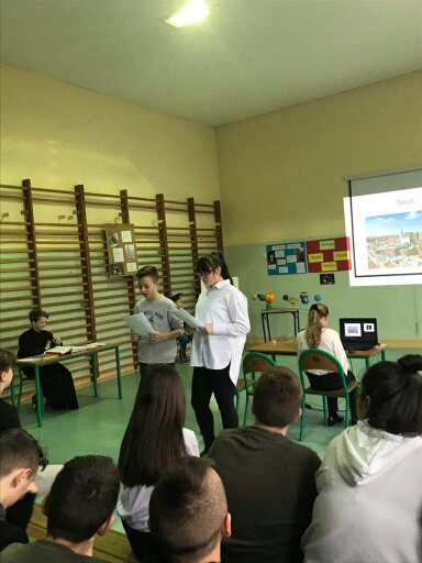 Dziś podczas szkolnych obchodów przypomnieliśmy sobie tych wielkich uczonych i ich dokonania: Mikołaja Kopernika, Marię Skłodowską-Curie, Ignacego Łukasiewicza, Kazimierza Funka, Aleksandra Wolszczana, Stefana Banacha oraz Jana Heweliusza.