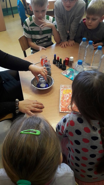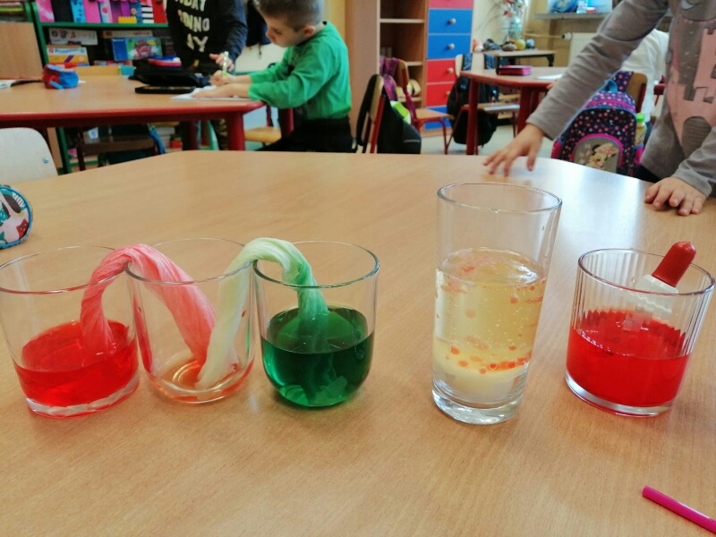 Z okazji Dnia Nauki Polskiej nasi najmłodsi uczniowie – przedszkolaki z oddziałów 0a i 0b postanowiły poznać tajniki wiedzy. Oprócz wielu ważnych wiadomości, które przekazały im panie, było mnóstwo wspaniałej zabawy. Dzieci miały okazję obserwować i uczestniczyć w doświadczeniach naukowych.