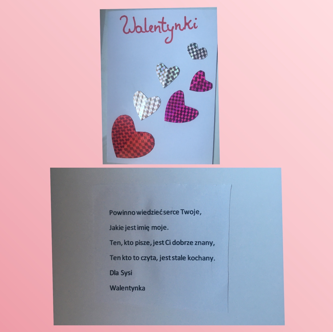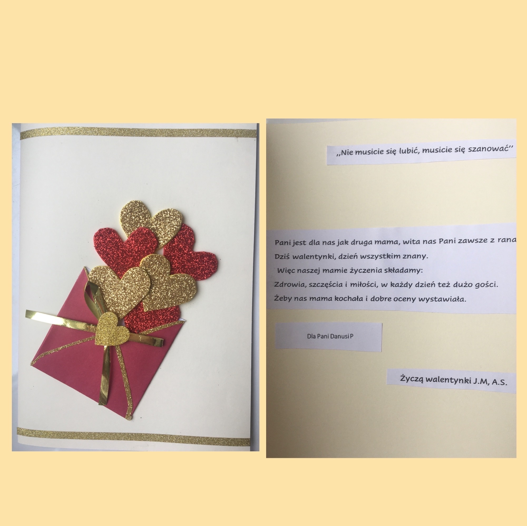 Z tej okazji Samorząd Uczniowski przygotował kartki walentynkowe dla wszystkich klas IV-VIII. Nie zabrakło też kartek indywidualnych od uczniów dla osób, którym chcieli sprawić niespodziankę w tym wyjątkowym dniu.