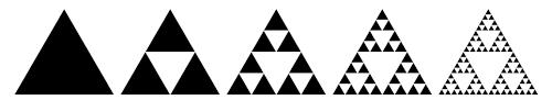 Trójkąt Sierpińskiego otrzymuje się następująco: w trójkącie równobocznymłączy się środki boków, dzieląc go w ten sposób na cztery mniejsze trójkąty. Trójkąt środkowy usuwa się, a wobec trzech pozostałych trójkątów operację się powtarza, dzieląc każdy z nich na cztery mniejsze trójkąty, usuwając środkowy, a wobec pozostałych czynności się powtarzają. Punkty pozostające po nieskończenie wielu powtórzeniach tej operacji tworzą trójkąt Sierpińskiego.
