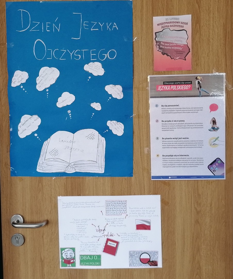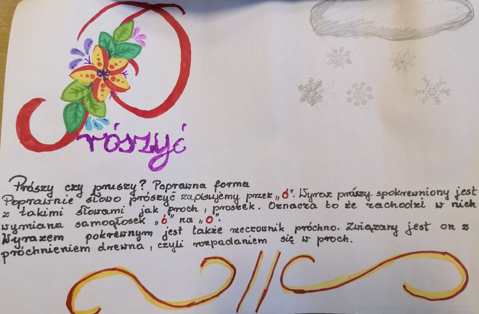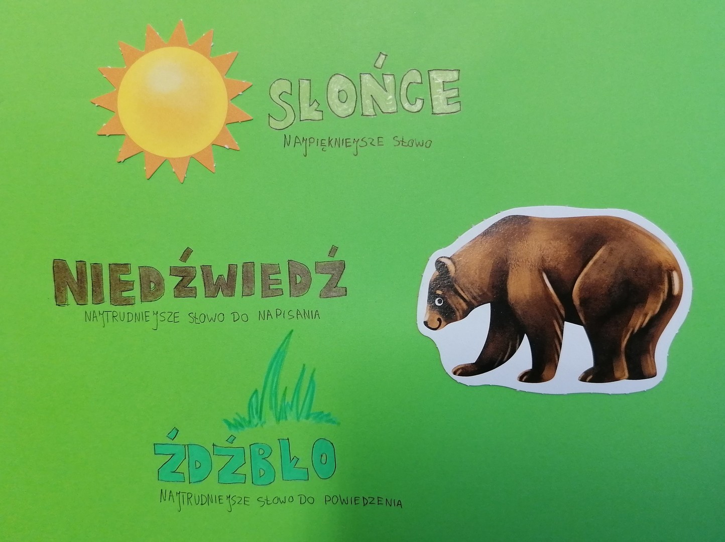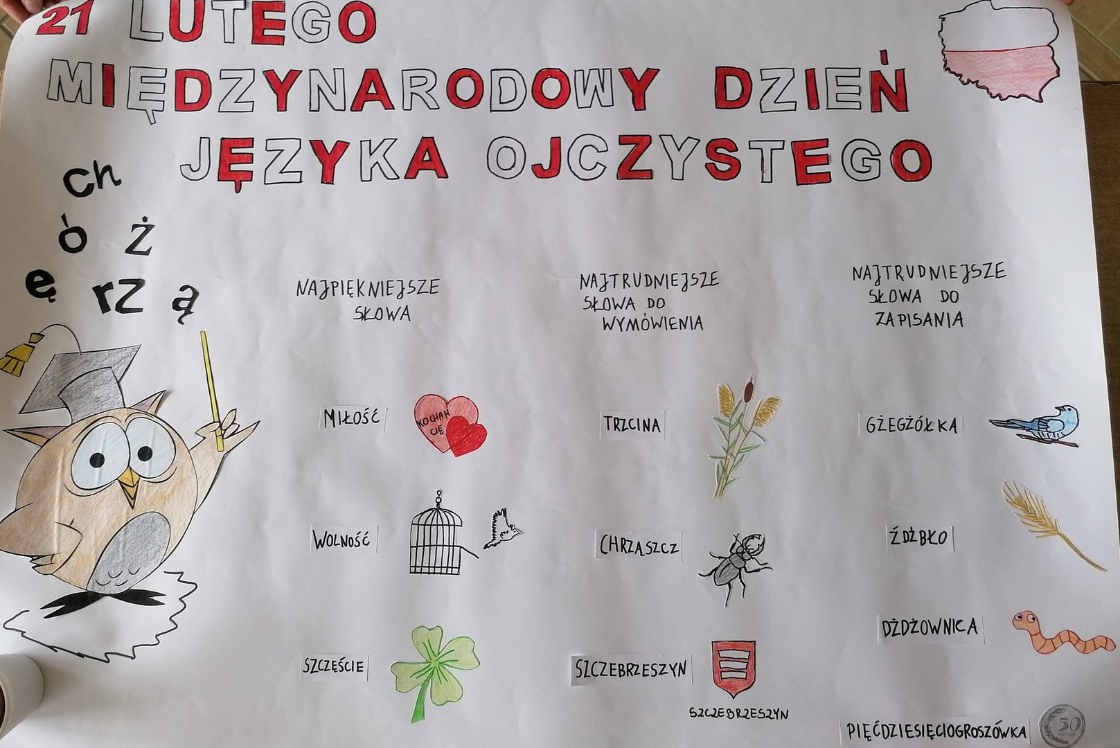 Chętni uczniowie podjęli się też zrealizowania zadań dodatkowych: stworzyli mapy myśli dotyczące języka ojczystego, na których umieścili ciekawostki językowe i swoje przemyślenia, wykonali plakaty z hasłami reklamującymi dbałość o poprawne posługiwanie się językiem polskim, a także wybrali i zilustrowali trzy wybrane przez siebie słowa z języka polskiego – najpiękniejsze, najtrudniejsze do wymówienia i najtrudniejsze do zapisania. Efekty ich prac można podziwiać w galerii.