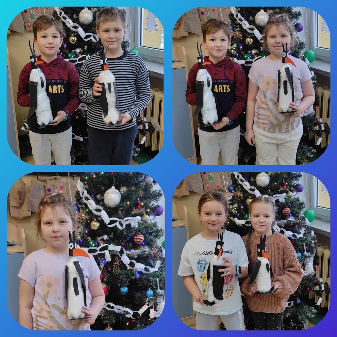 Podróż po Antarktydzie?… Dlaczego nie? Dla uczniów klasy 2a nie ma rzeczy niemożliwych. Podczas omawiania lektury „Zaczarowana zagroda” odkrywaliśmy jej surowy klimat, poznawaliśmy zwierzęta zamieszkujące tę mroźną krainę pokochaliśmy… pingwiny, których niesamowite pomysły, fenomenalna mądrość i majestatyczny wygląd wprowadziły nas w zachwyt. Cykl lekcji z lekturą zakończył się wykonaniem z plastikowych butelek zwierzęcego bohatera – pingwina Elegancika, który wzbudził w nas ogromną sympatię.