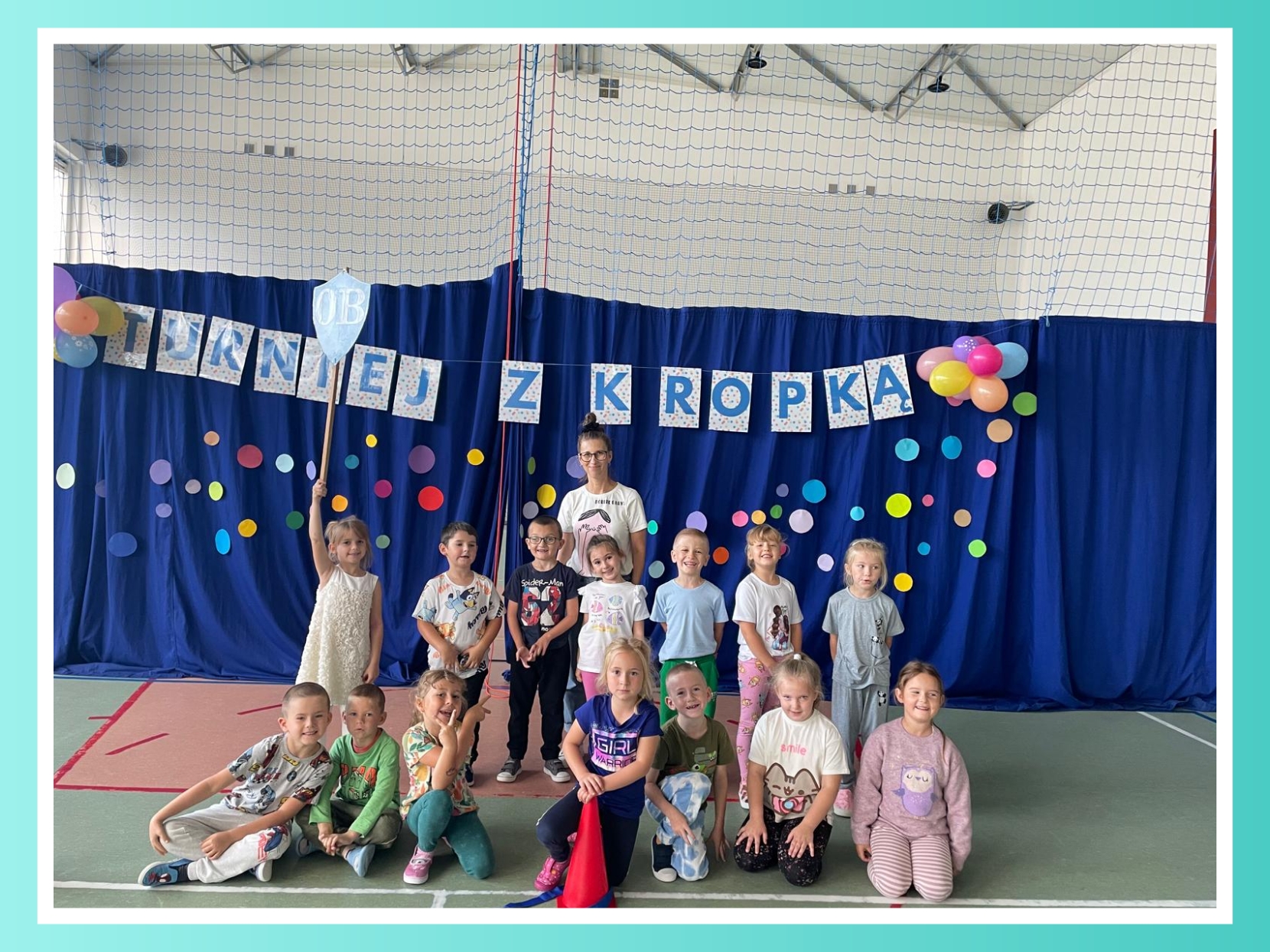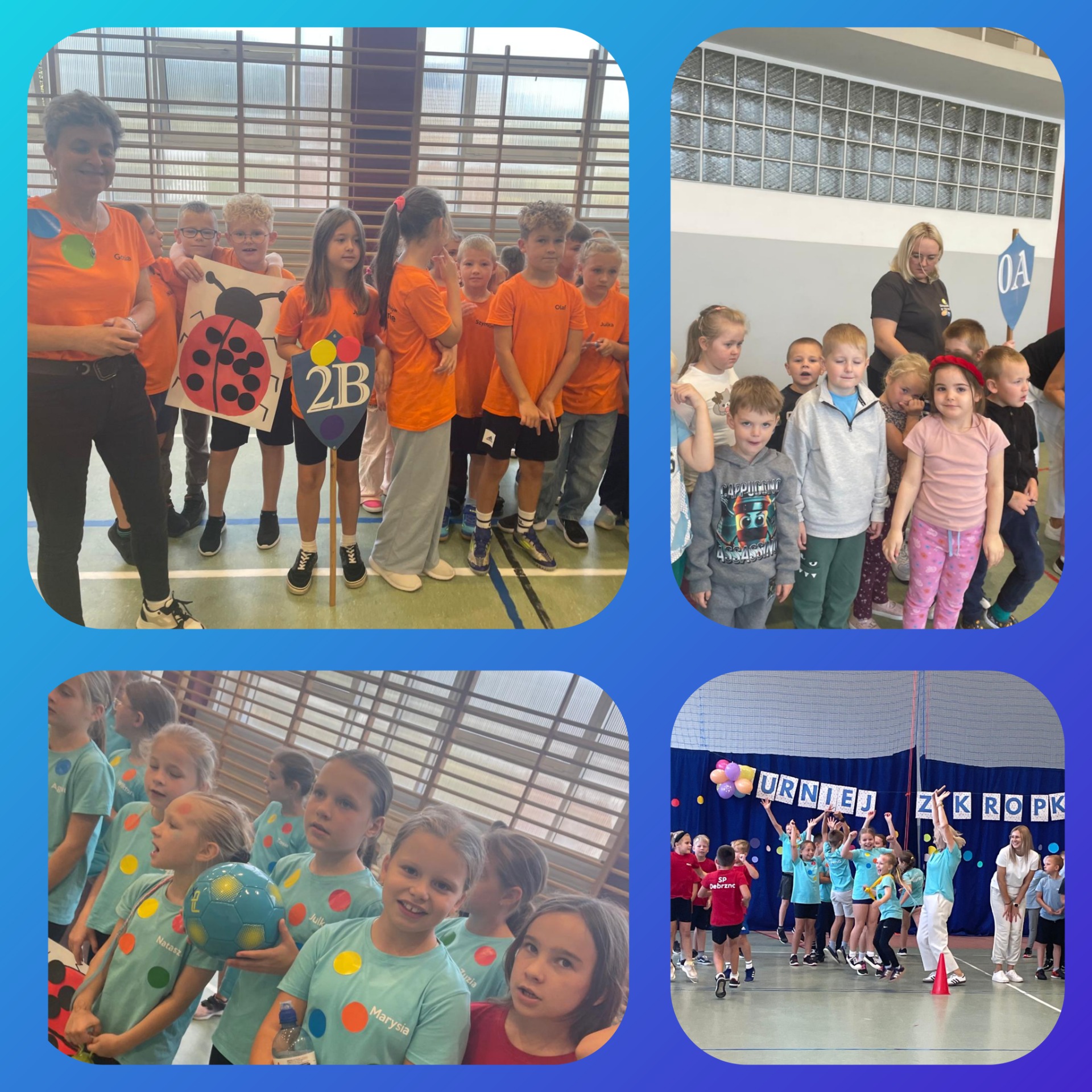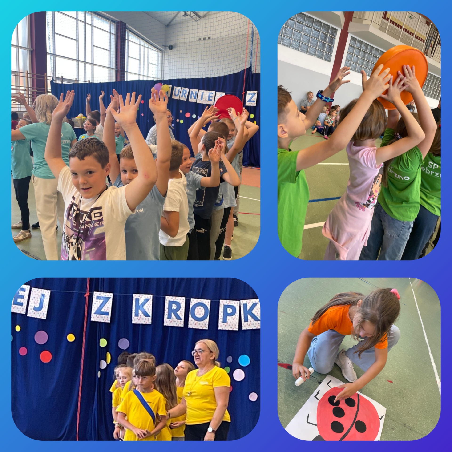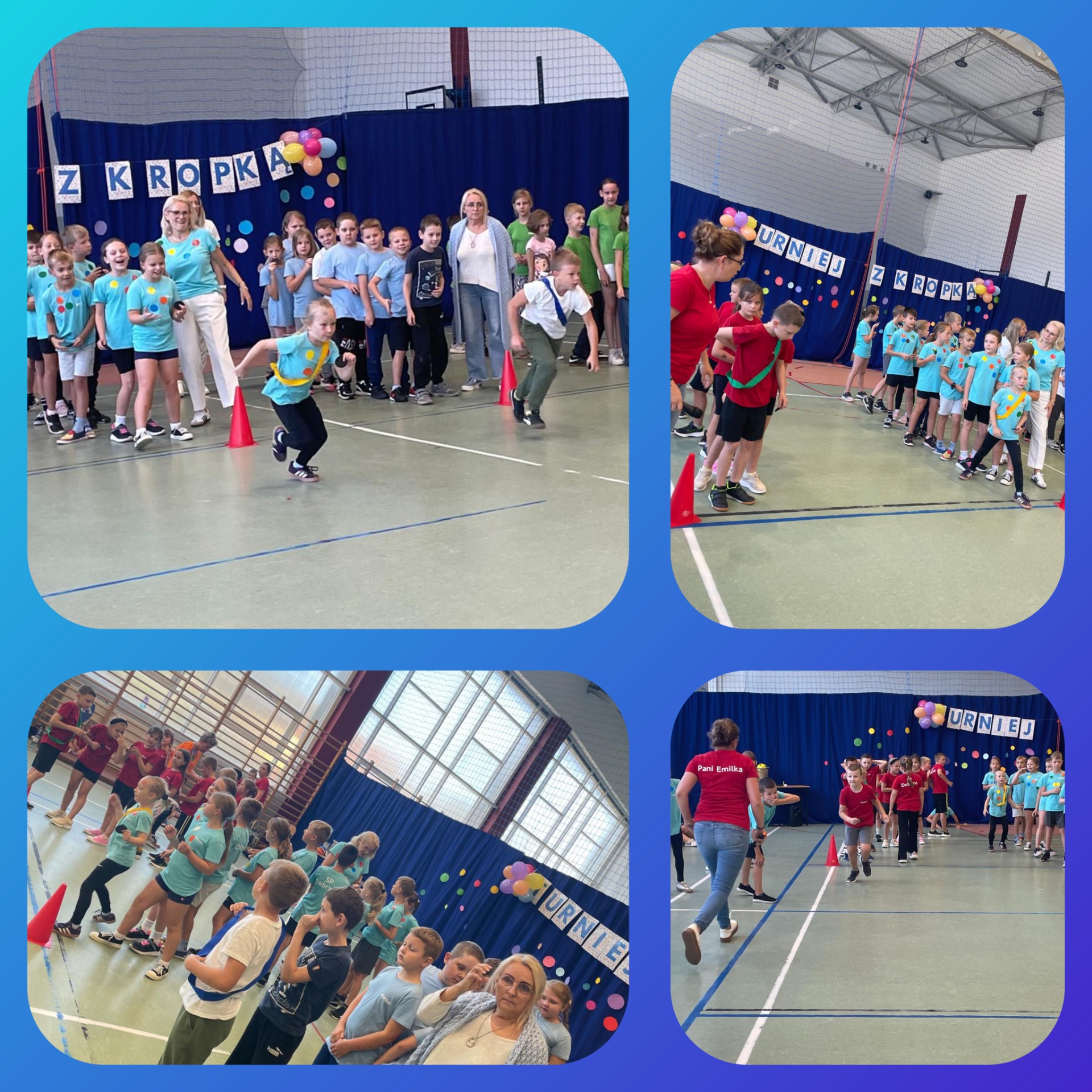 W naszej szkole odbył się pierwszy turniej sportowy „z kropką”, w którym udział wzięły klasy 0-3. Uczniowie rywalizowali w różnych konkurencjach sportowych, wykazując się sprawnością, współpracą i dobrym humorem. Każda klasa zdobyła nagrodę, a wydarzenie przebiegło w atmosferze radości i wspólnej zabawy.
